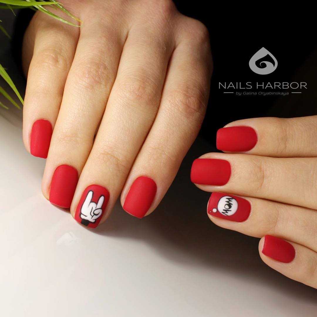 - С добавлением «комиксного» рисунка по центру ногтя.