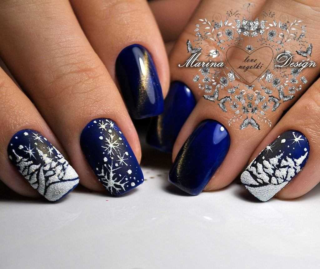 Снежные и зимние узоры на ногтях 2023 фото