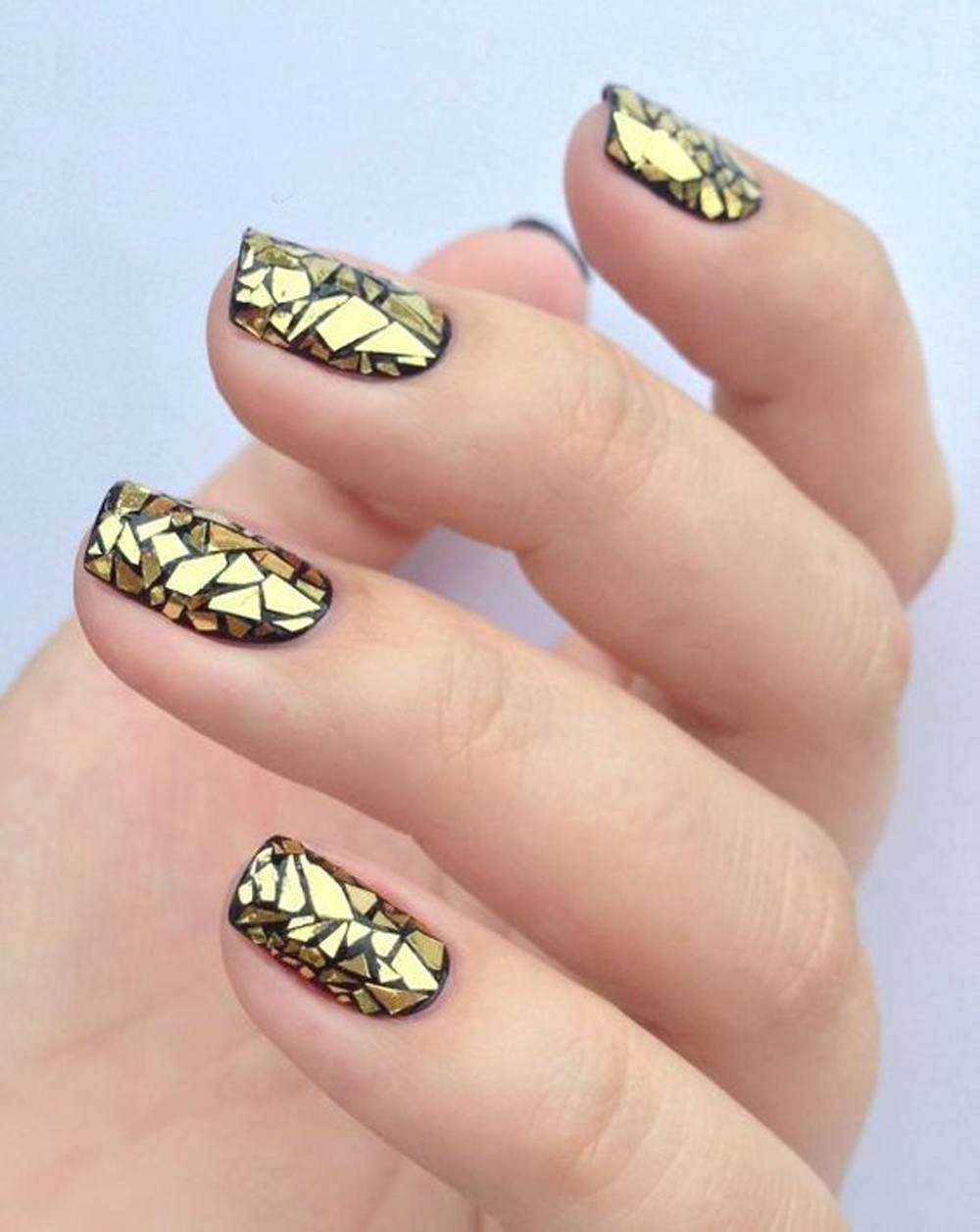 На коротких ногтях идеально сделать маникюр с фольгой. Это придаст необычный, интересный, стильный вид, наполняя ногти светом и переливами. Никакие дизайны маникюра не имеют такого сногсшибательного эффекта, как эффект фольги, который сочетается практически с любым оттенком основного лака. Фольгу можно применять как украшение для праздничного дизайна и на повседневном маникюре.