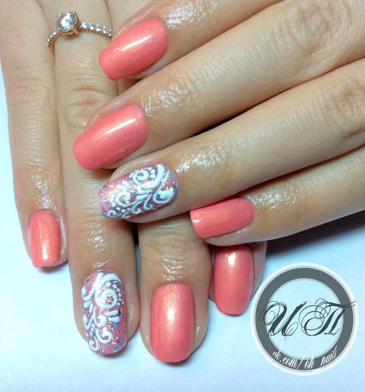 Актуальный маникюр 2022: фото кораллового нейл-арта с декором