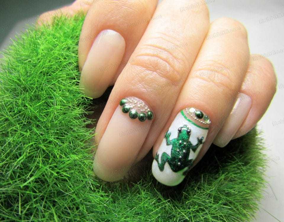 Трехпалая жаба тоже к богатству. Разве кто-то отличит ее на ногте от милой лягушки? Идеально, если на среднем пальце левой руки Вы изобразите сундучок с сокровищами.