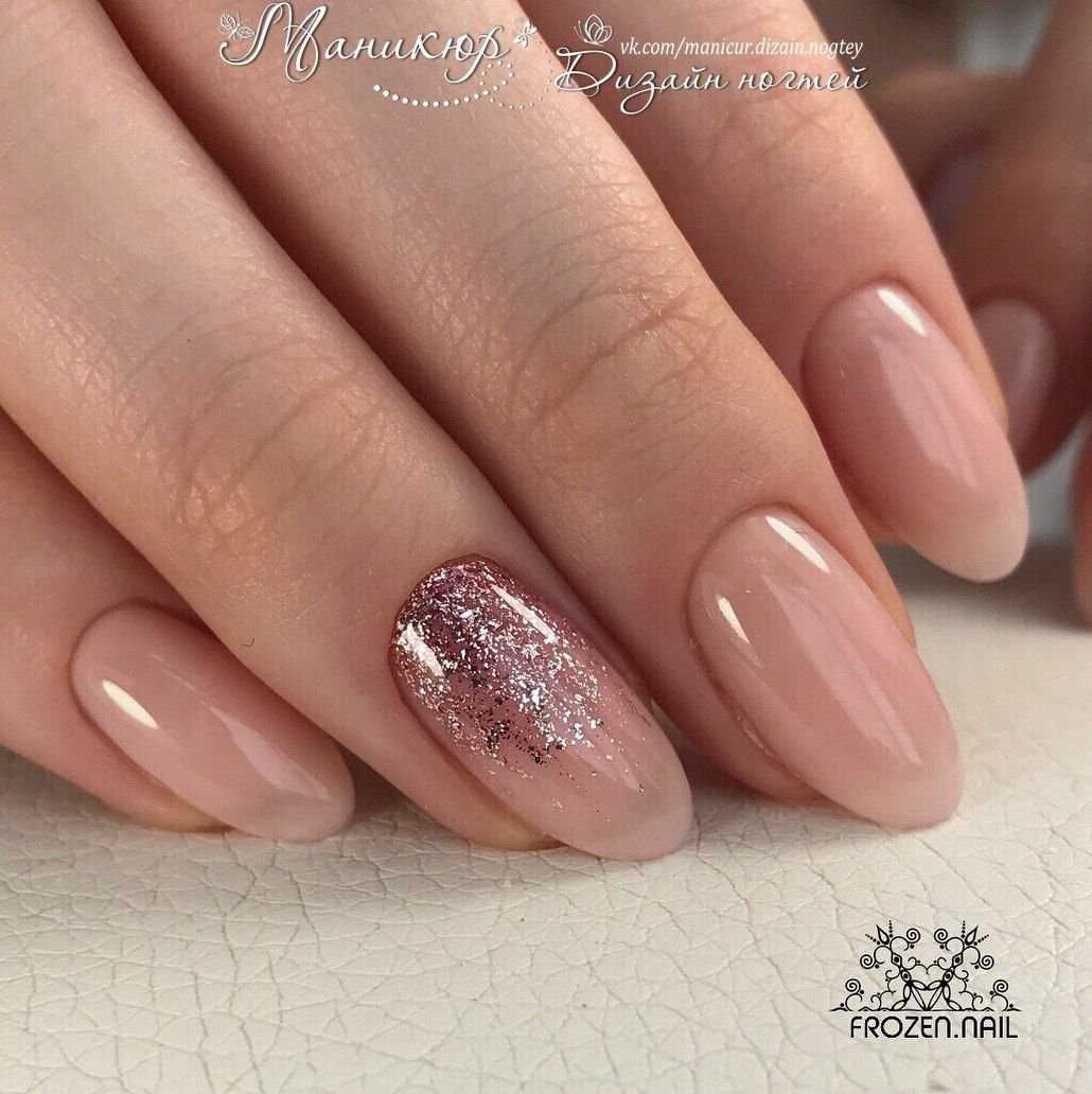 #2 Нюдовый маникюр с блестками на миндальные ногти