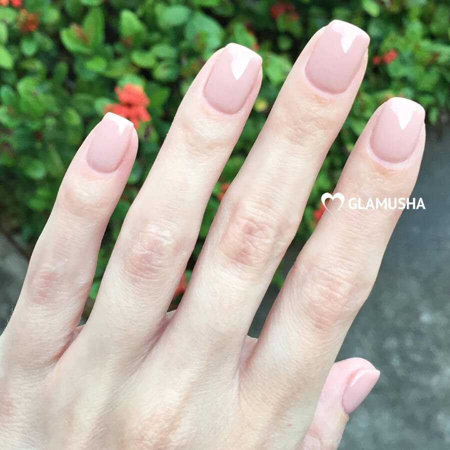 Особенно хороши телесные и пудровые цвета для маникюра с гель лаком. Такое покрытие держится дольше. Ногтевая пластина успевает за это время прилично отрасти, а светлый оттенок делает переход менее заметным.