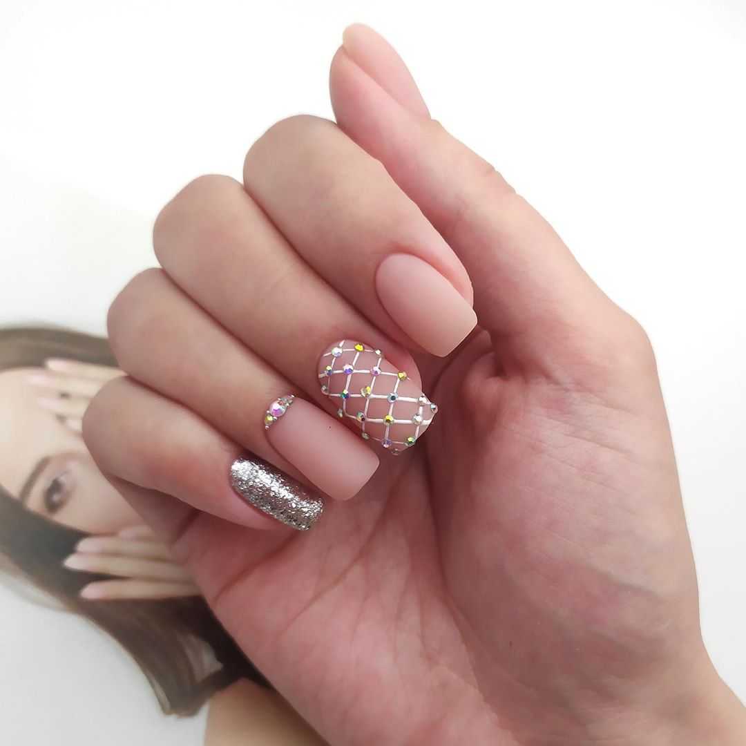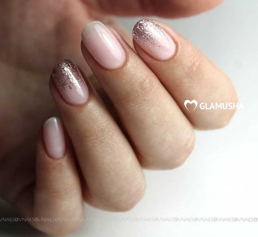 Нюдовый дизайн ногтей с блестками: фото 2022