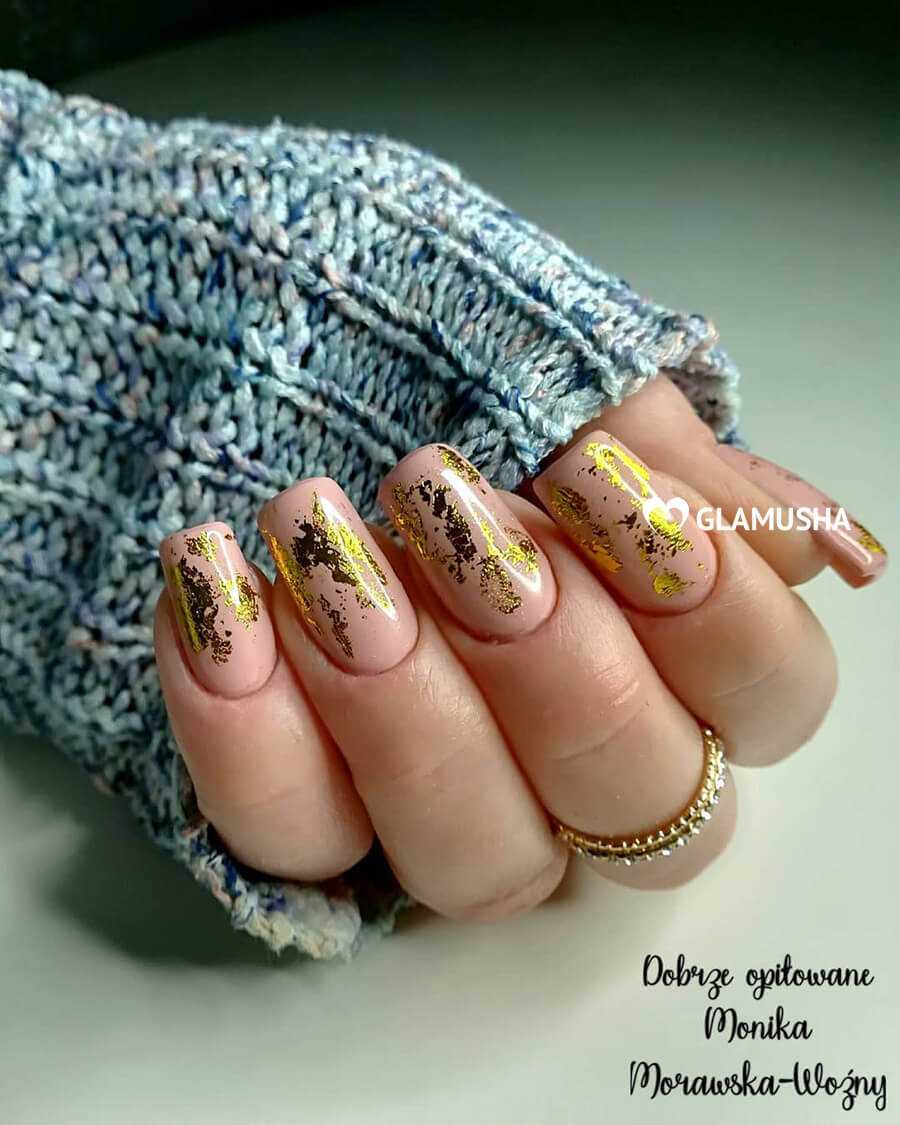 #3 Нюдовый маникюр на короткие ногти с блестками