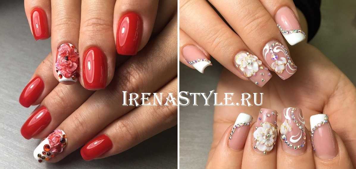 Объемный маникюр – украшение не для каждого дня. Выбирая такой дизайн, хочется, чтобы тема была актуальной и ногти смотрелись стильно. Если такая работа делается в день свадьбы, то здесь все более или менее понятно: нежные цвета и светлые, идеально вылепленные лепестки роз или просто завитушки смотрятся очень мило. Если хочется просто порадовать себя, то выбрать можно всегда актуальную тему цветов. Уменьшенные копии маков, роз, ирисов и пионов прекрасно смотрятся. Гелевый объемный дизайн имеет вид стеклянной поверхности и особый блеск, недостижимый при акриловом моделировании.
