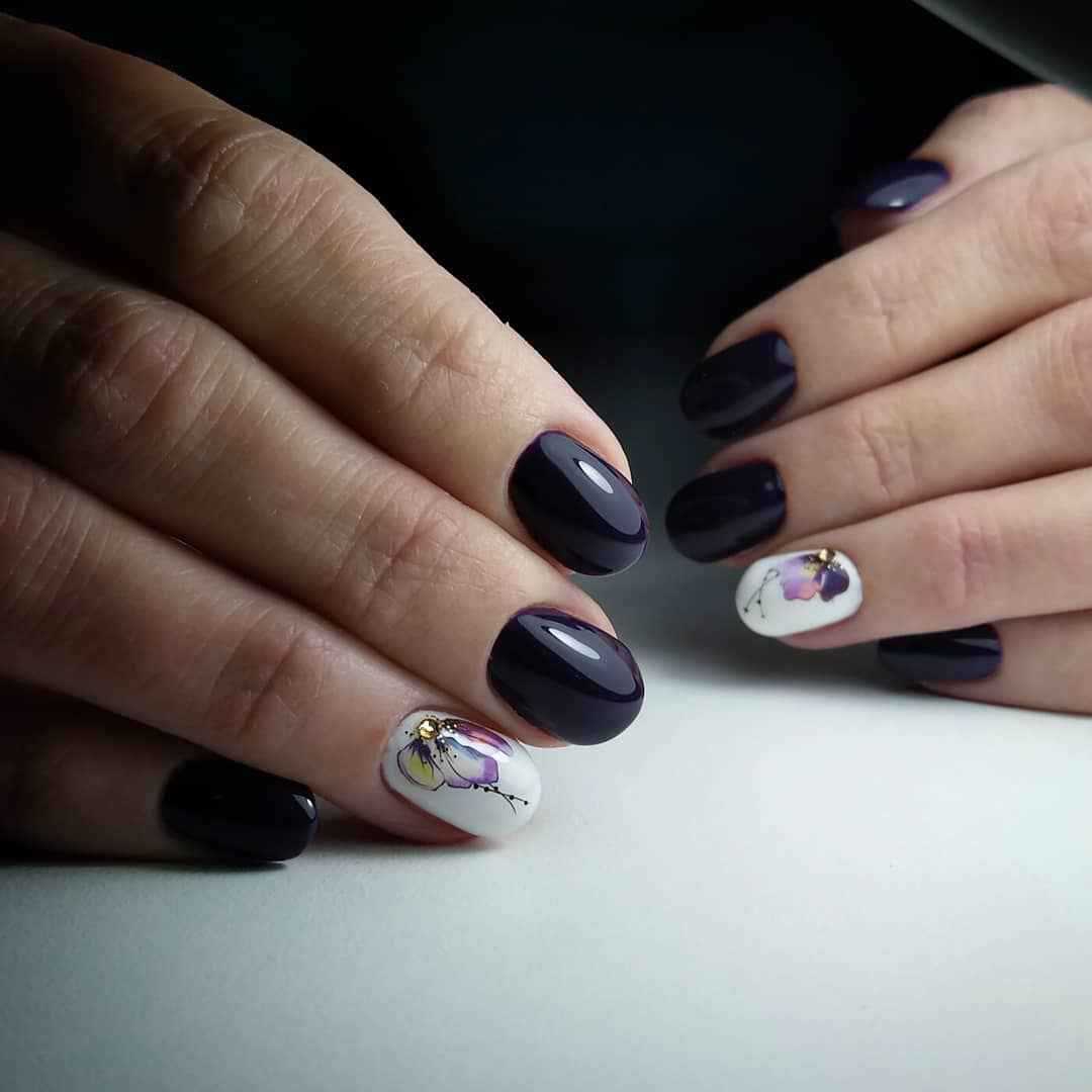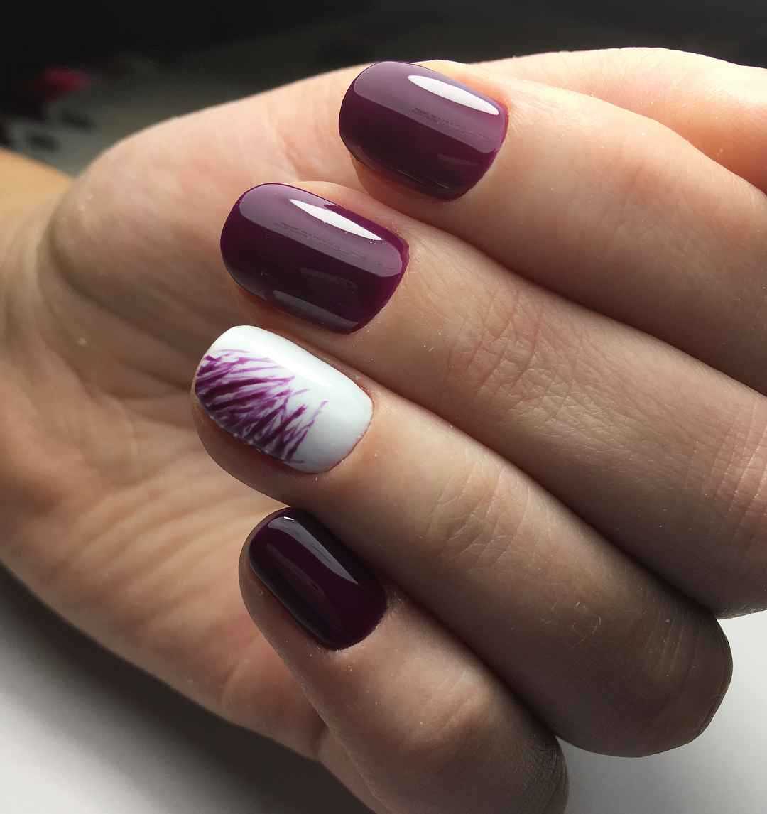 Хотите опробовать на себе маникюр цвета баклажан, но сомневаетесь из-за минимальной длины ногтевых пластин? Отбросьте сомнения, данный оттенок гармонично выглядит не только на длинных ногтях, но и на коротких, как в однотонном варианте, так и с минимальным дизайном.