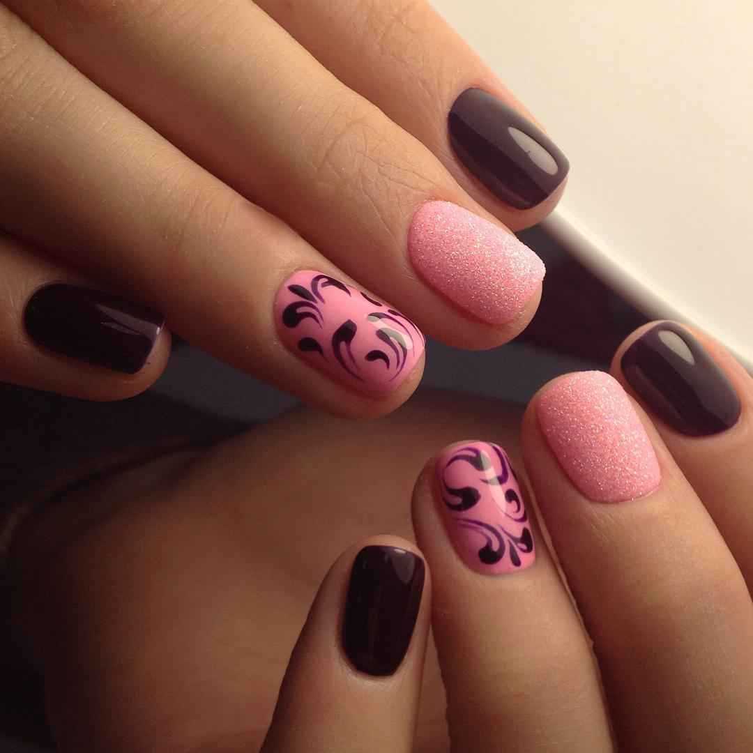 Комбинировать фисташковый с розовым — отличная идея. Очень стильно выглядят ногти с фисташковым лаком в качестве базы, на которой с помощью розового лака выполнены декоративные элементы. Рисунки в виде кружева, цветочные мотивы или геометрические принты только приветствуются.