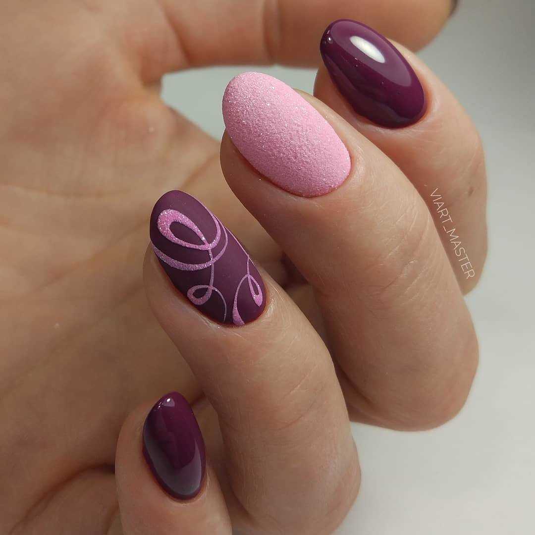 Среди всех новинок дизайна лидером будет матовый. Он очень эффектно выглядит на миндальном ногте, помогает образу приобрести изюминку и роскошь. Бархат отлично сочетается с остальными дизайнами, особенно с росписями и цветами.