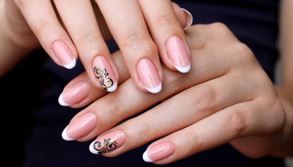 Френч на ногтях миндалевидной формы: можно разукрасить с помощью страз