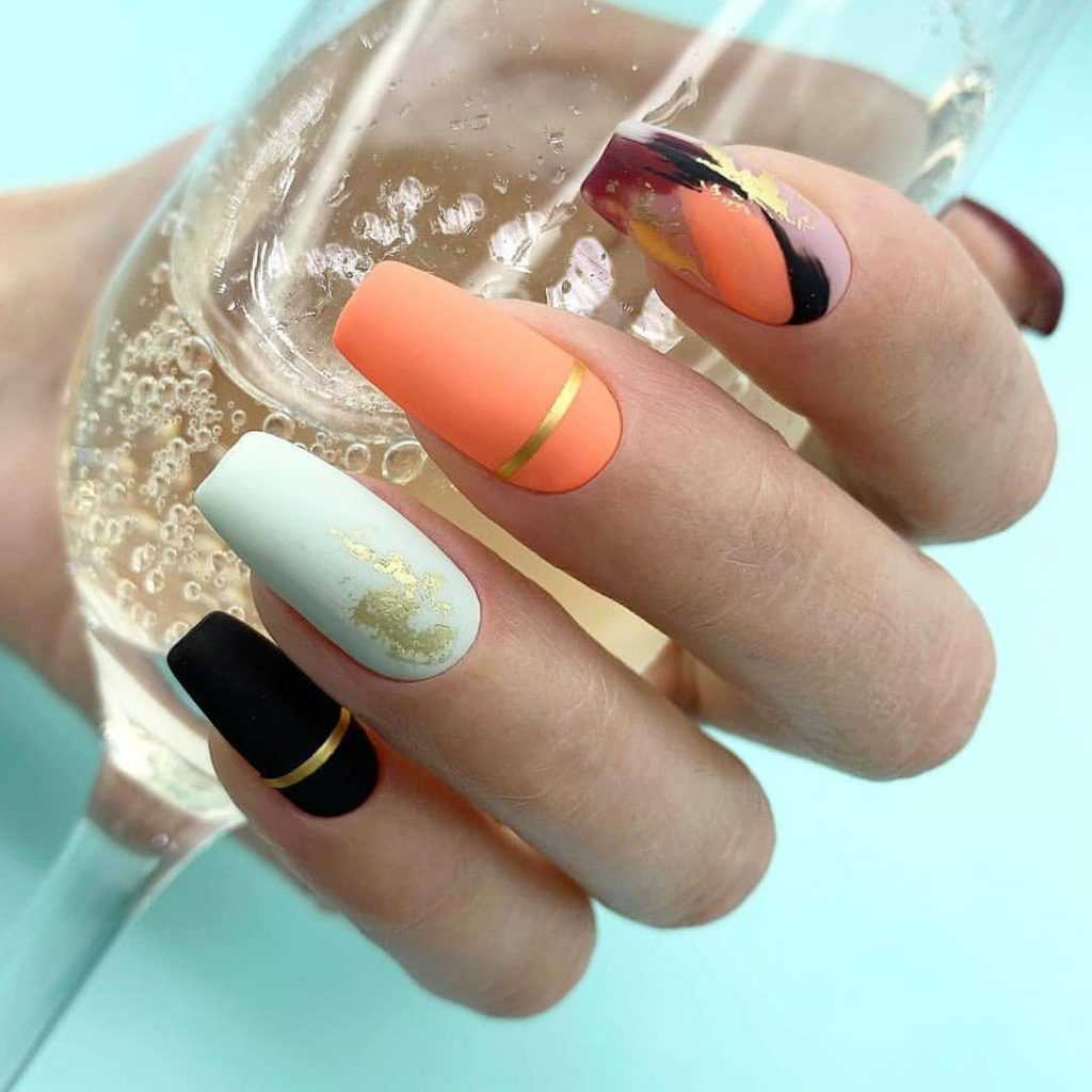 Разноцветный маникюр — самый простой способ дизайна на миндалевидные ногти в 2022 году. Сочетание цветов разноцветного маникюра можно подобрать по разным критериям: