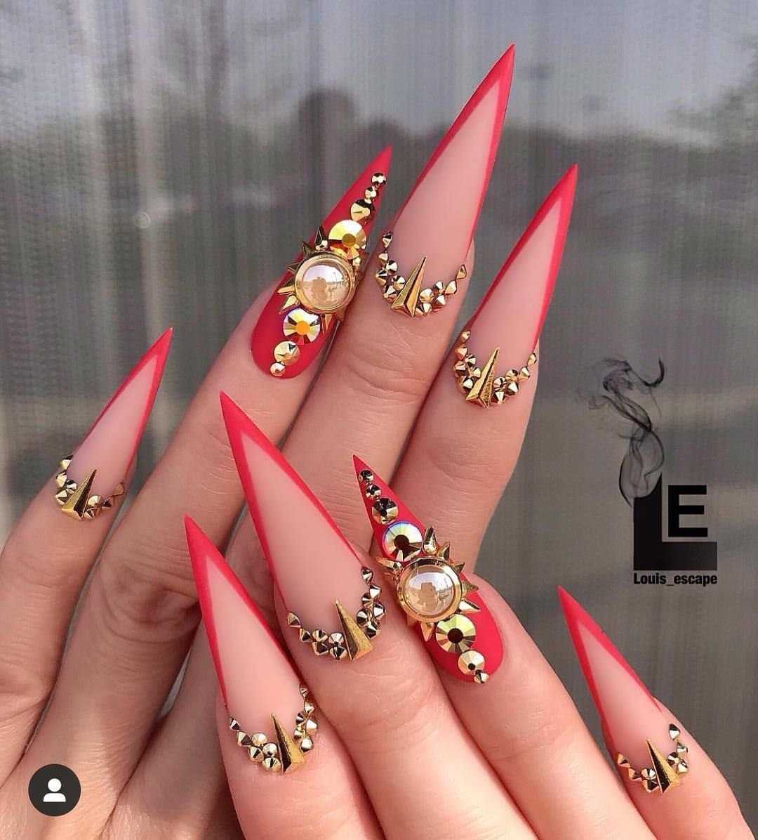 Новый красный дизайн для ногтей миндальной формы на 2020 год