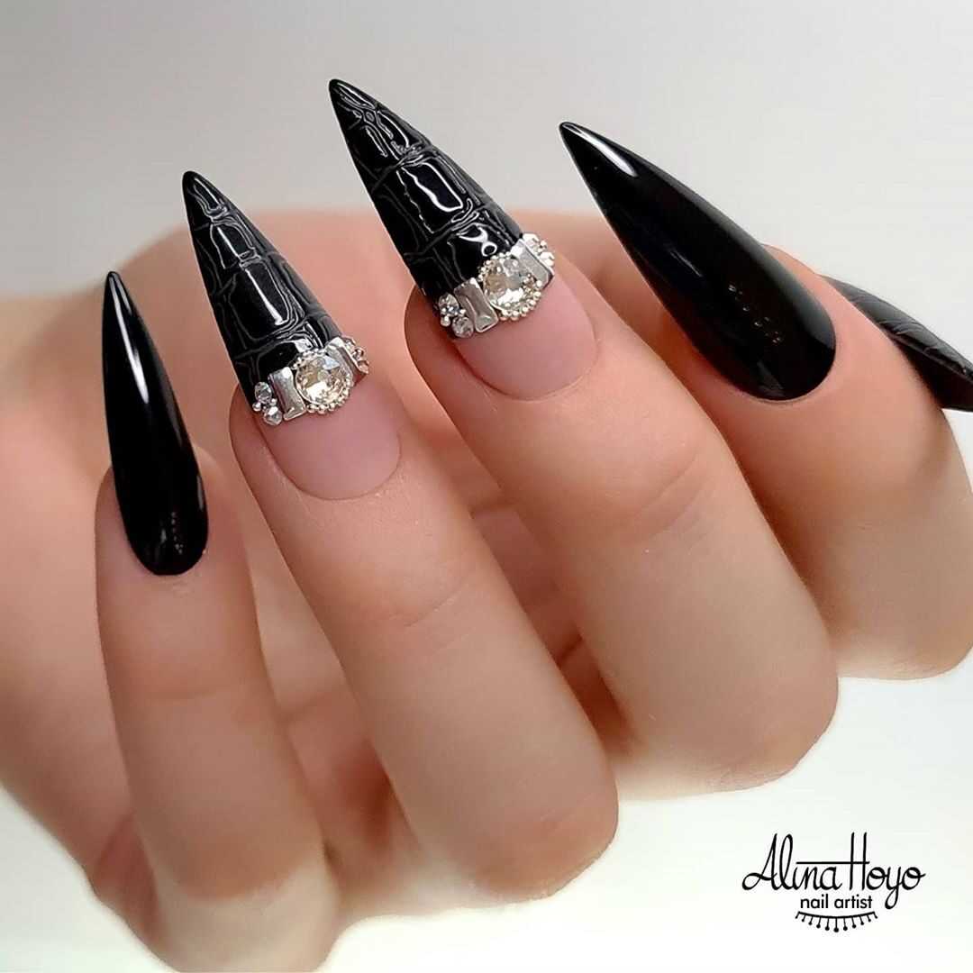 Еще один вариант со стразами. В данном варианте черные стразы дополнительно подчеркивают весь шарм черного цвета, привлекая своей игрой цвета на свету.