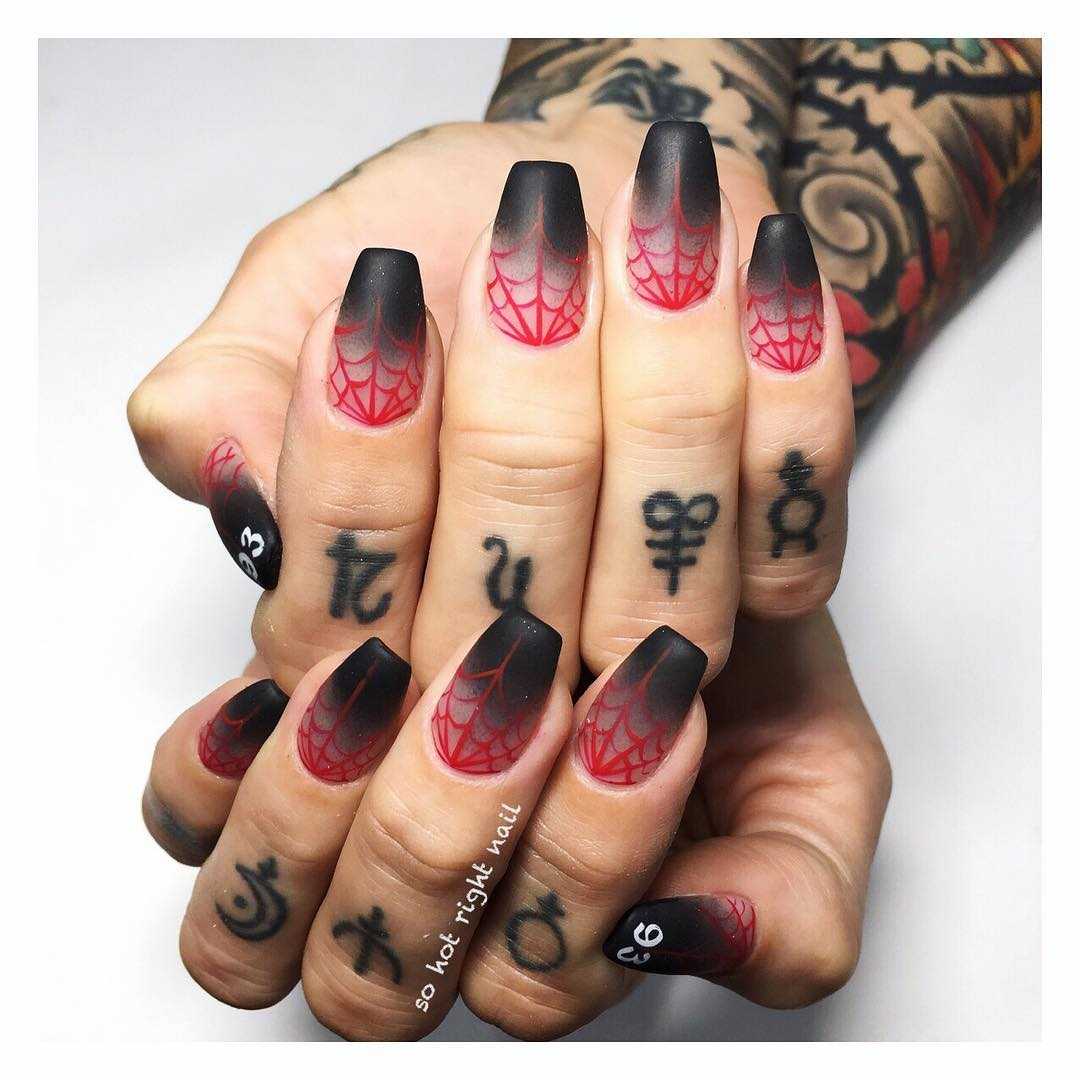 Красная паутина на ногтях градиент.