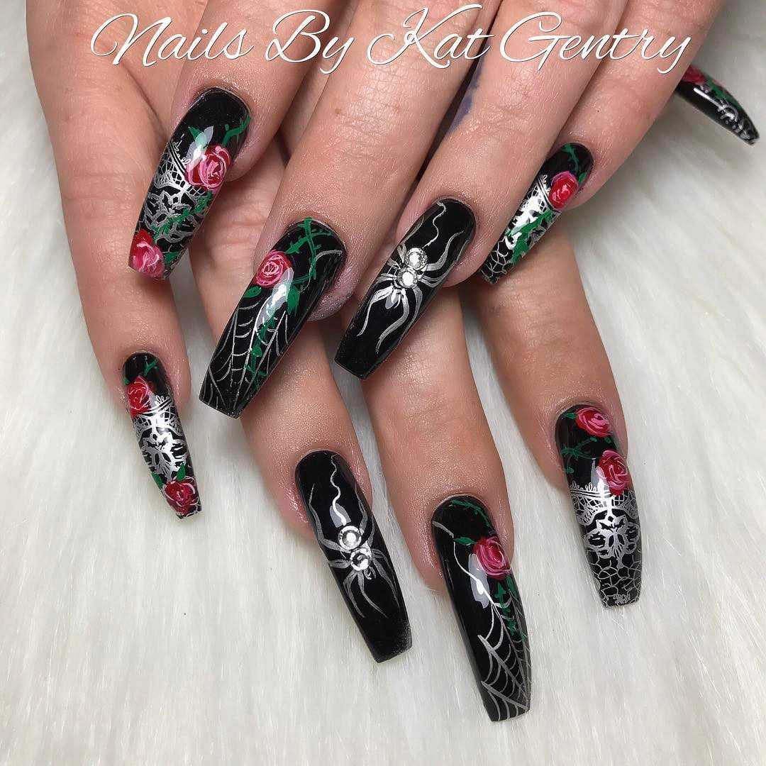 2020 Дизайн ногтей с пауками маникюр на хеллоуин 66 фото