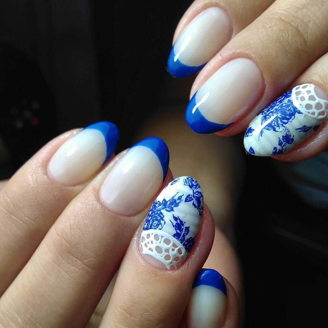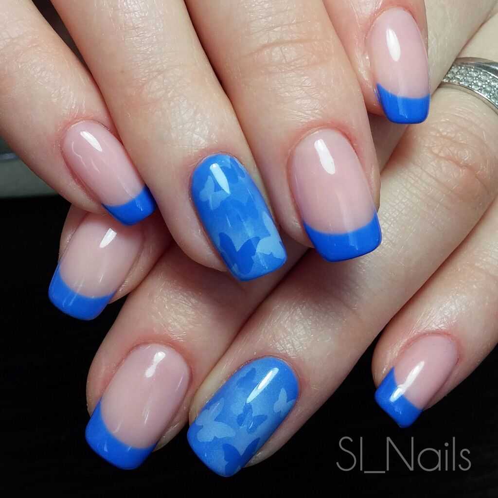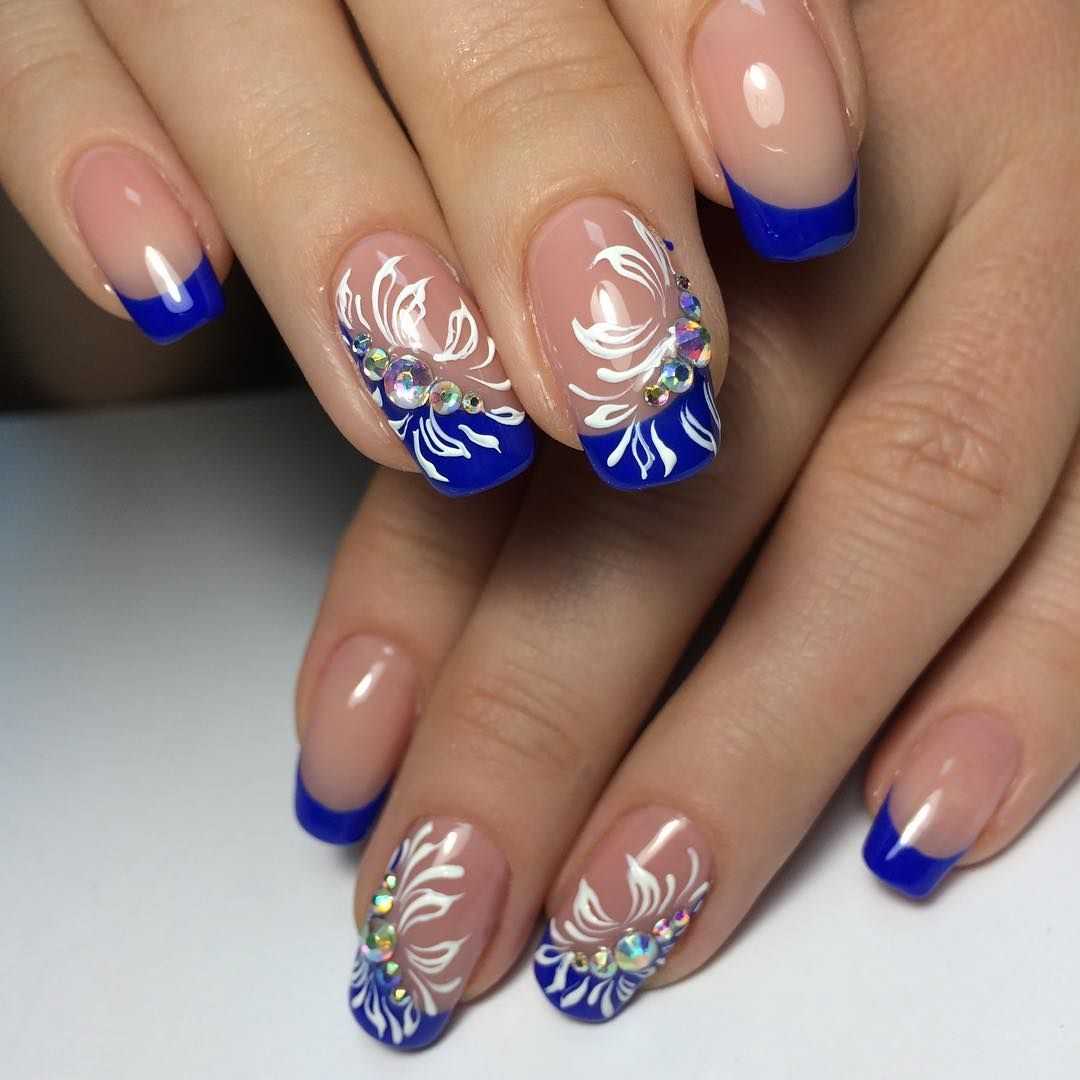 Теперь белому френчу придется покинуть пьедестал популярности, ведь его смещают аналоги, выполненные во всех цветовых решениях. Безусловно, одним из признанных считается темно-голубой, выгодно подчеркивающий как молодые пальчики, так и ручку взрослой дамы. Обилие оттенков создает широкий ассортимент для любых ситуаций.