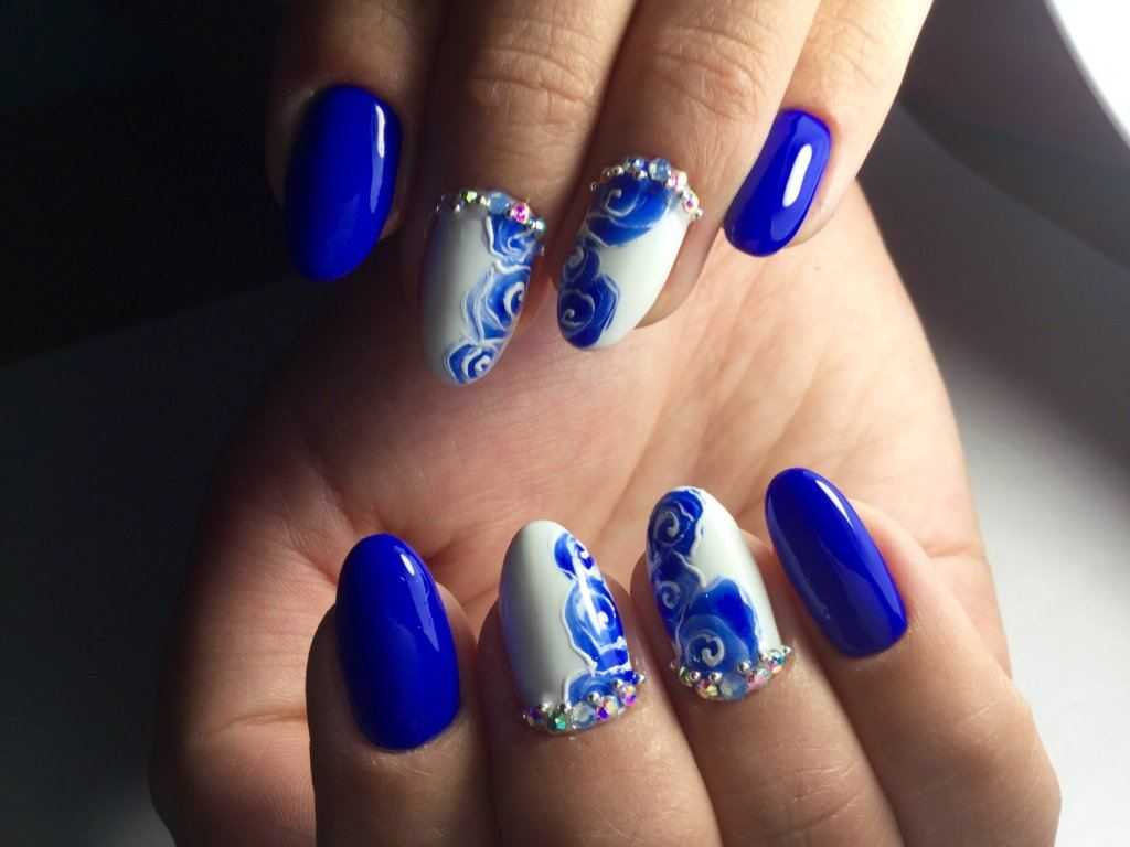 Голубые ногти с рисунком. Маникюр в насыщенных голубых тонах: фото 2019