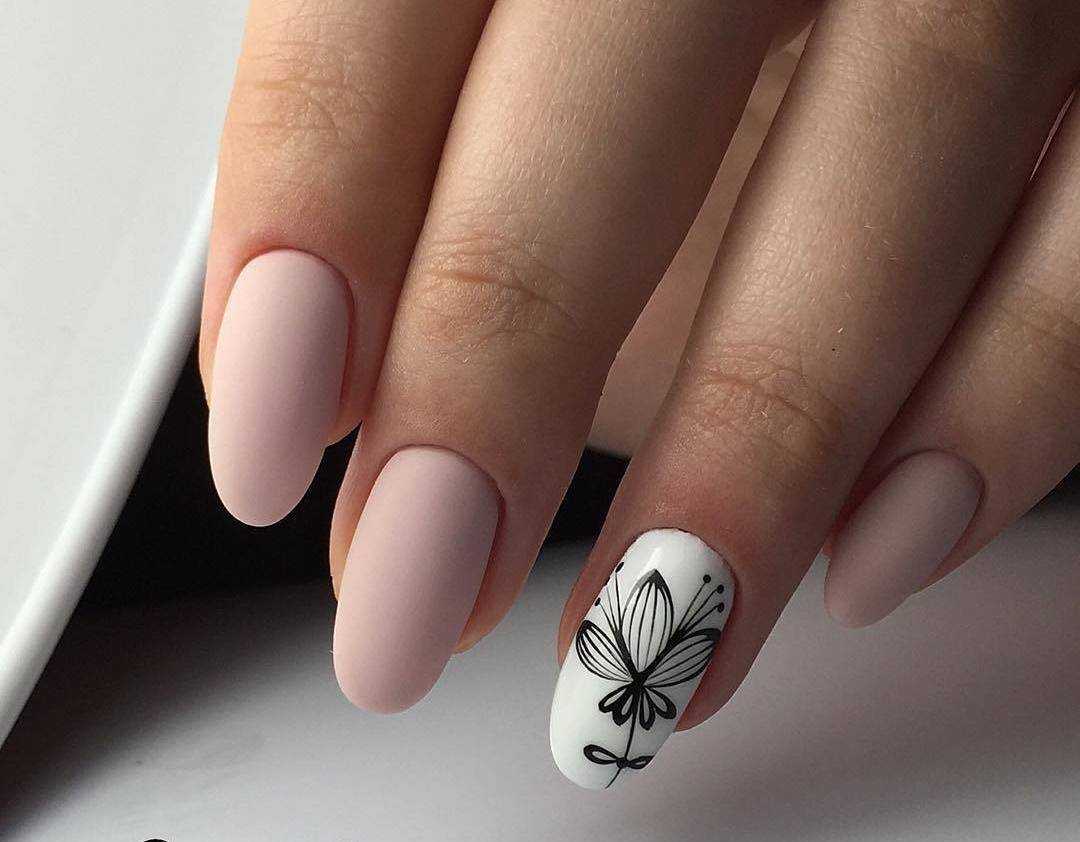 Овальные ноготочки — хит в этом году. Для них подойдет любой дизайн. Выигрышно смотрятся плавные продольные линии. Если хотите подчеркнуть женственность, то отдайте предпочтение рисункам цветов. Такие мотивы подчеркнут изящность.
