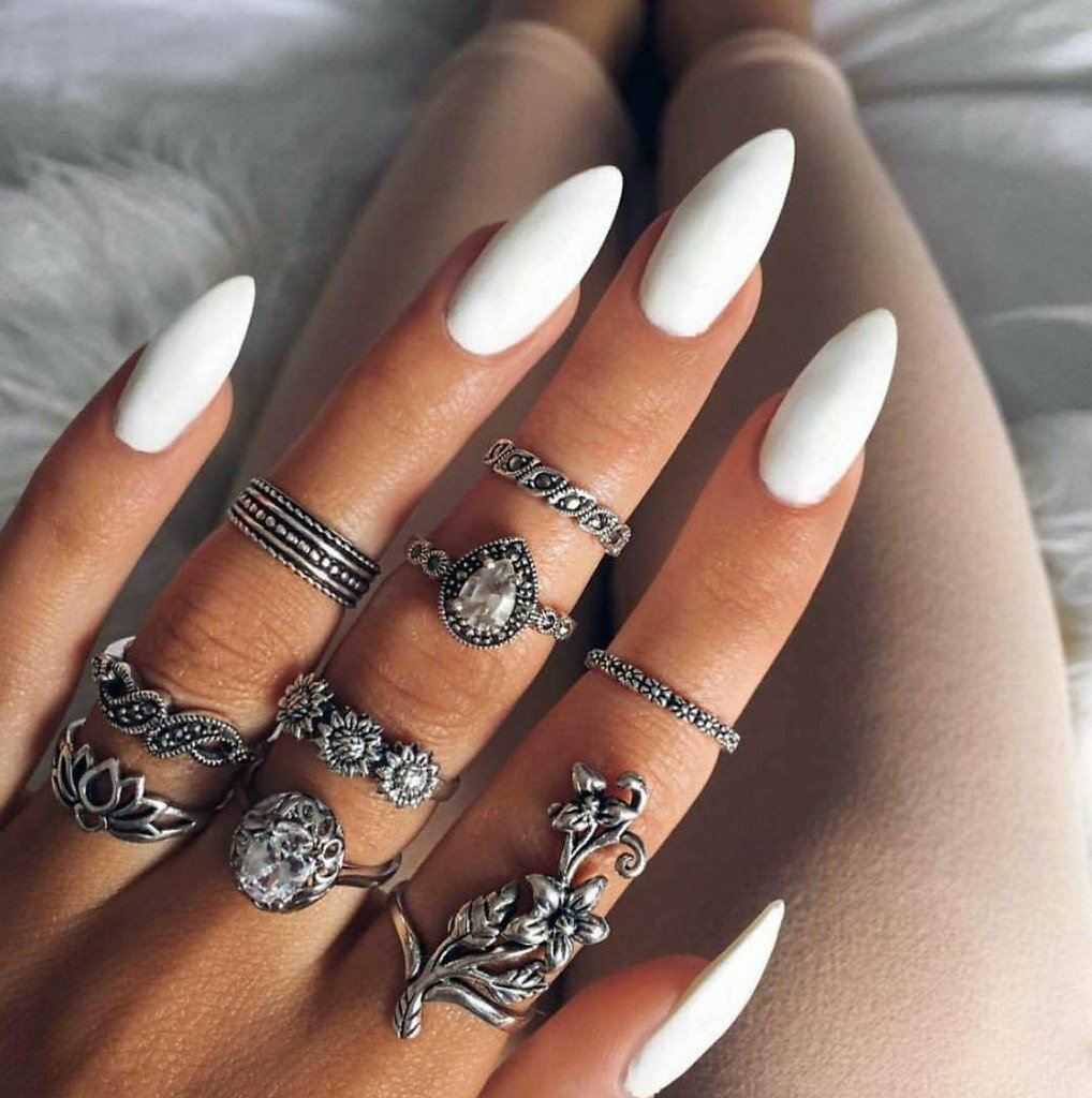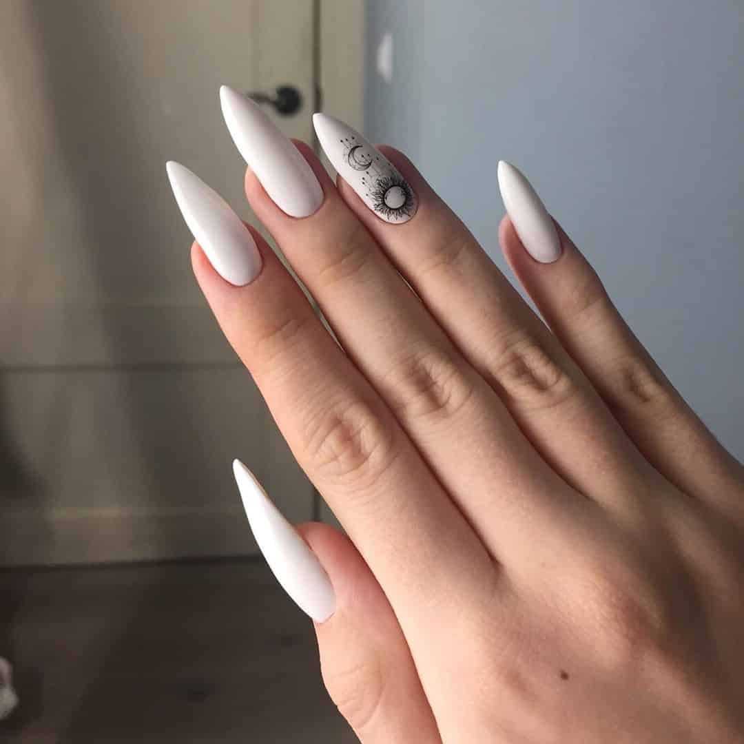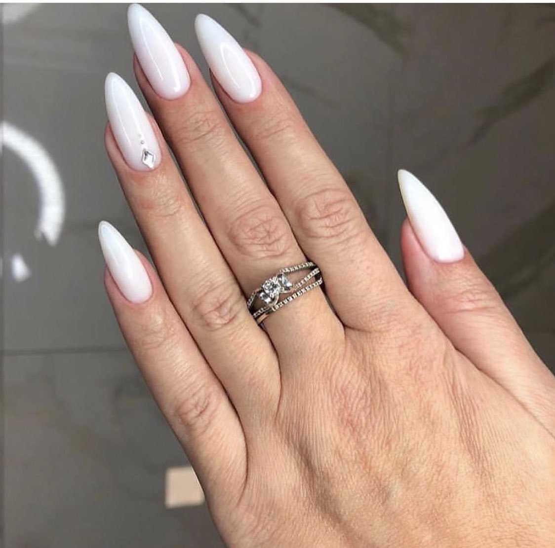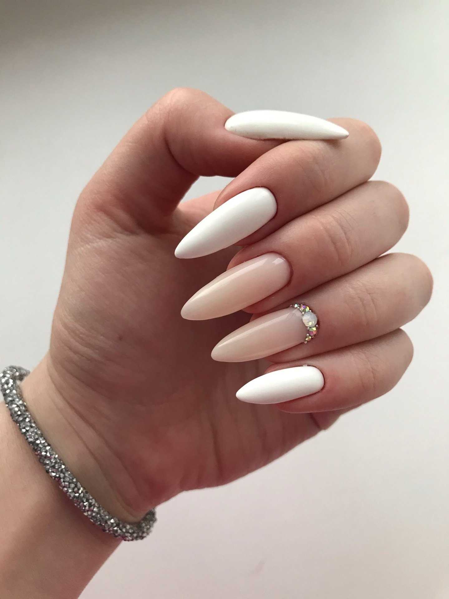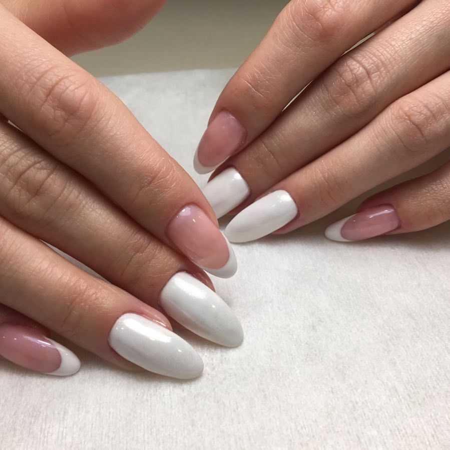 Белый лак хорошо смотрится на длинной и средней длине, сейчас особенно модны. Форма свободного края может быть разной. Овальные формы считаются наиболее предпочтительными, но сегодня в моде также прямые формы и миндалевидные формы со слегка закругленными боками.