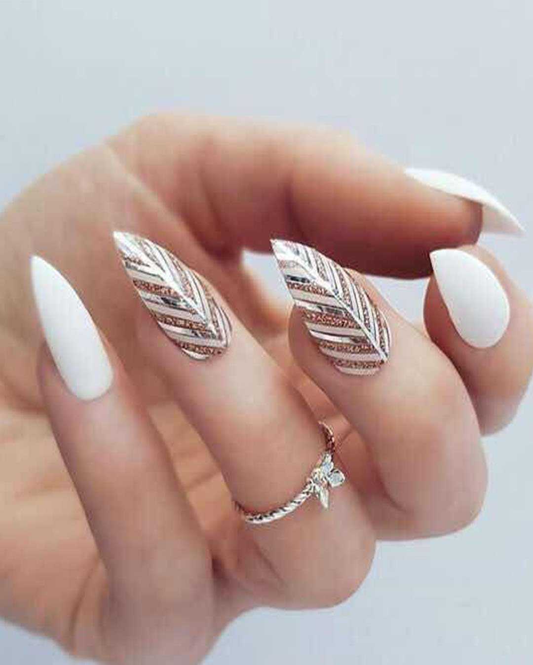 Чем украсить белый маникюр, чтобы он выглядел интересно и стильно? Вариантов множество, но все они должны соответствовать основному правилу современного нейл-дизайна – умеренность и сдержанность маникюра. Задача мастера лишь дополнить белый маникюр, а не полностью закрыть его сложным декором. К трендовым идеям 2020 года можно отнести: