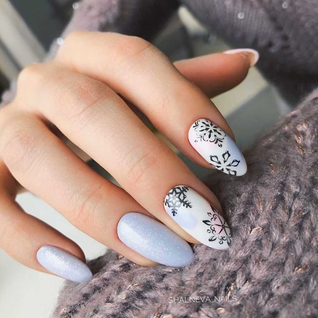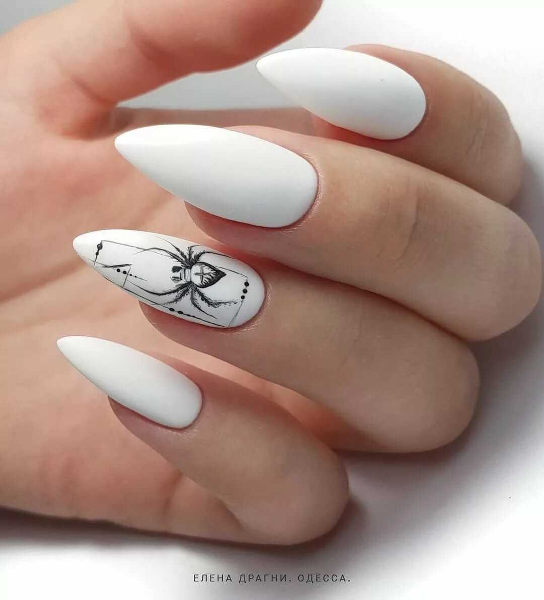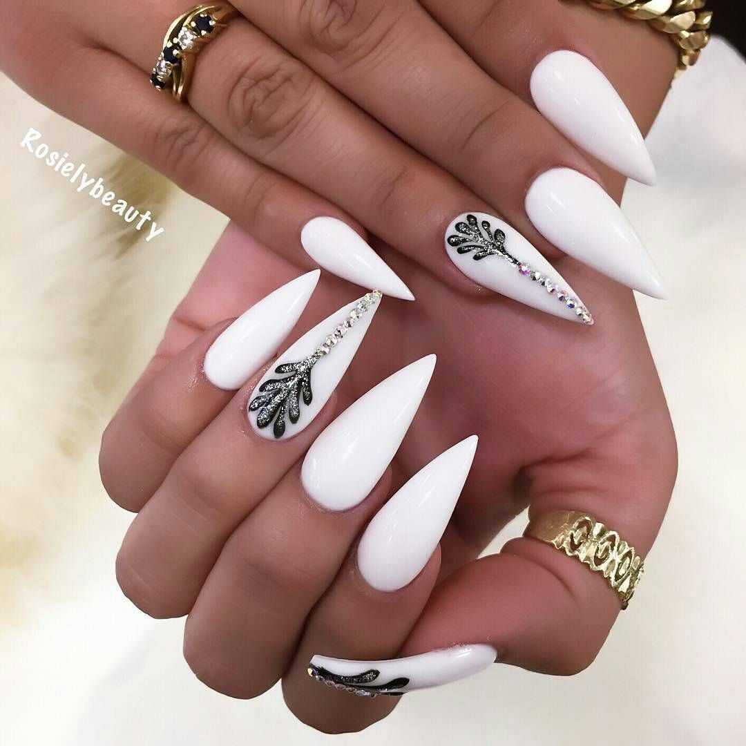 Черно-белый маникюр — один из любимых дизайнов ногтей многих девушек. Этот вариант оформления ноготков имеет множество текстурных вариаций, которые помогут подчеркнуть темный оттенок кожи, сделают ручки ярче и элегантнее. Также такой дизайн поможет придать любому образу одновременно дерзкий и современный вид. Круче всего смотрится на длинных острых ногтях. Можно добавить на некоторые ногти стразы, это поможет создать более праздничный дизайн.