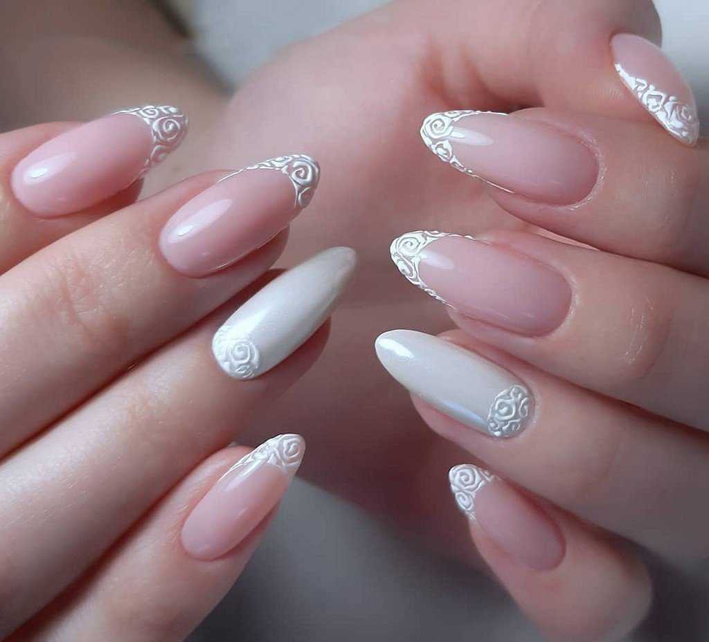 Белый маникюр с розовым – это классика. Именно такое сочетание цветов чаще всего выбираю невесты, а также девушки ля создания повседневного образа.