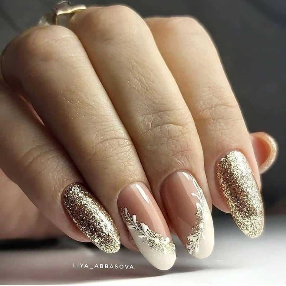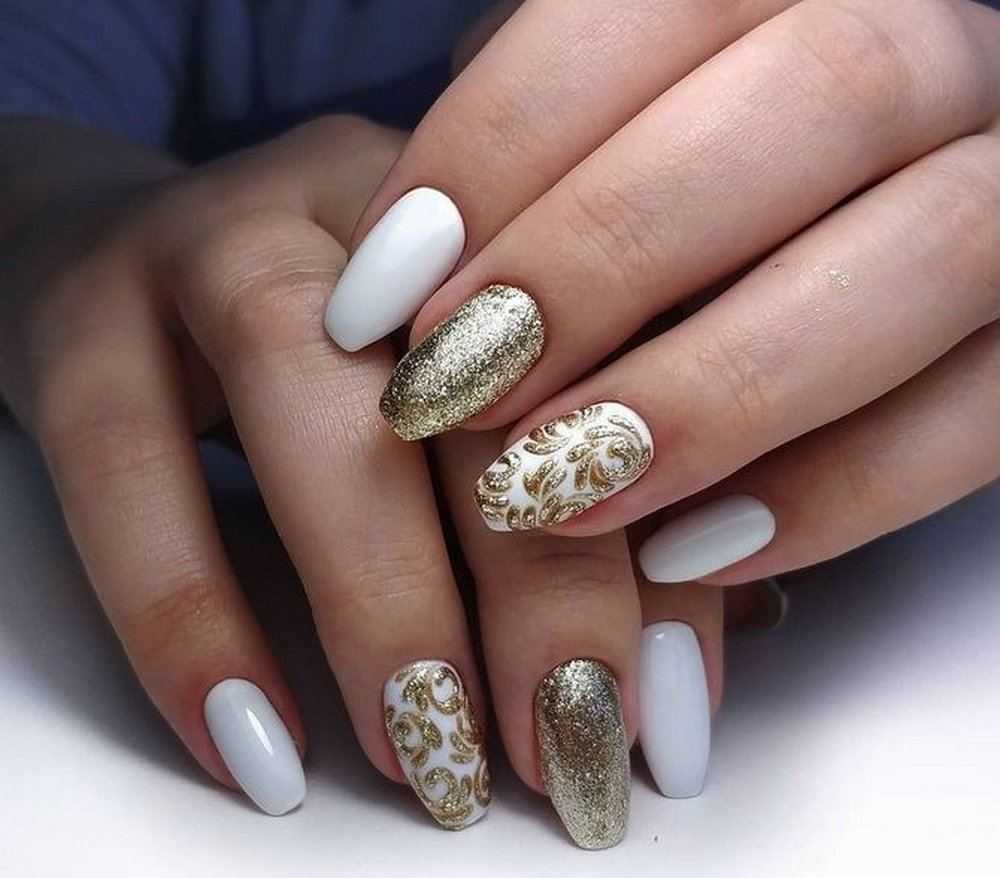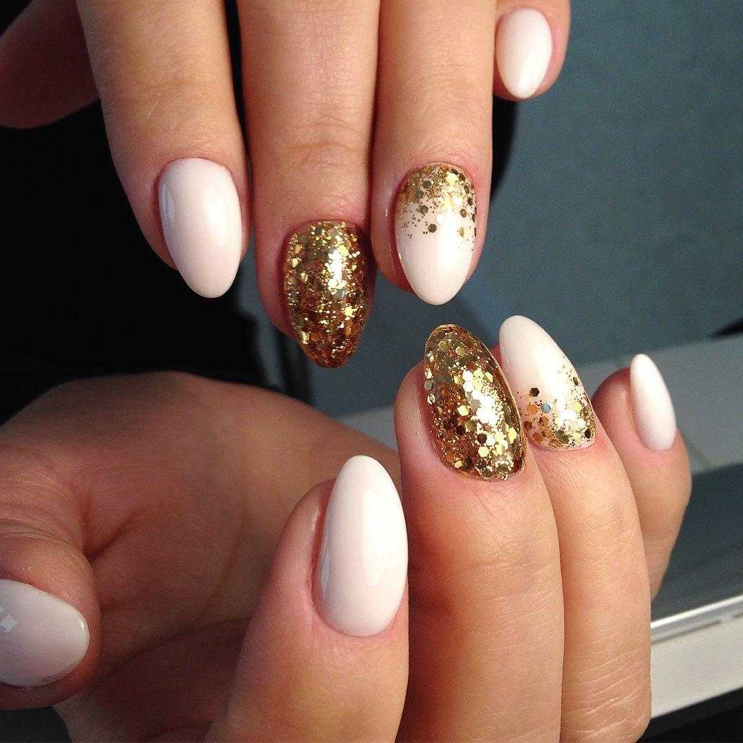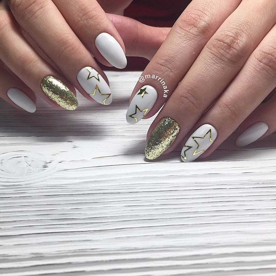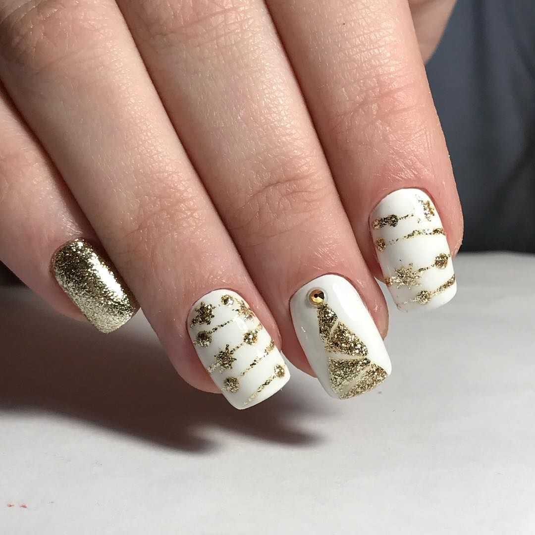 В Новый год вопросов к блеску ногтей не возникает. Наоборот, это тенденция. Это украшение стильно смотрится на всех ногтях: от коротких до длинных. Придает нотку роскоши, создает эффект «дорого-богато», элегантно. На фото показано, как вписать в нейл-дизайн золотые детали, чтобы не переборщить.