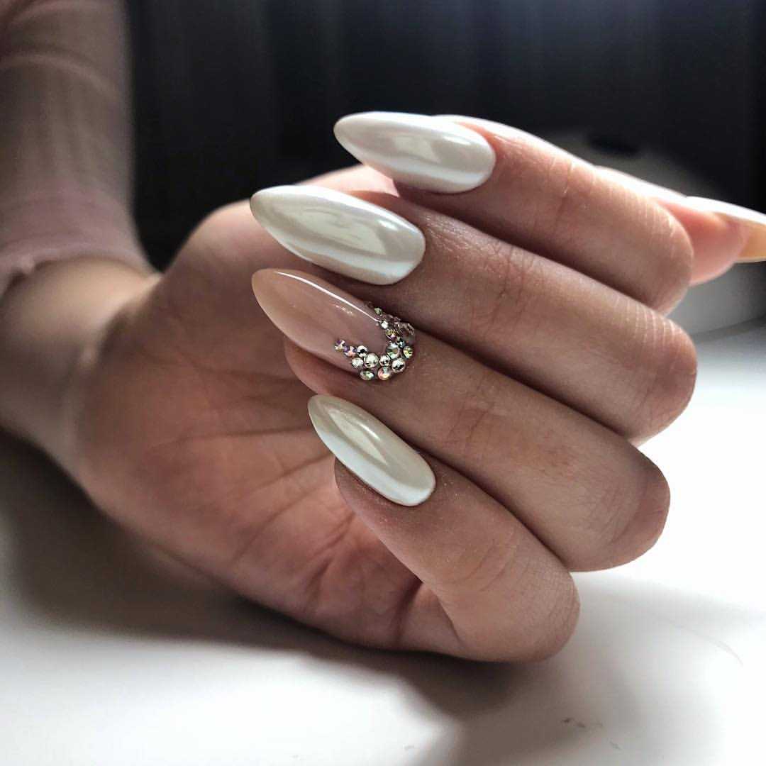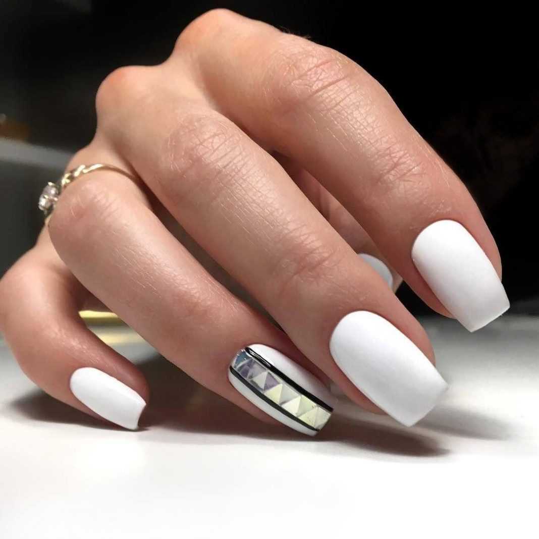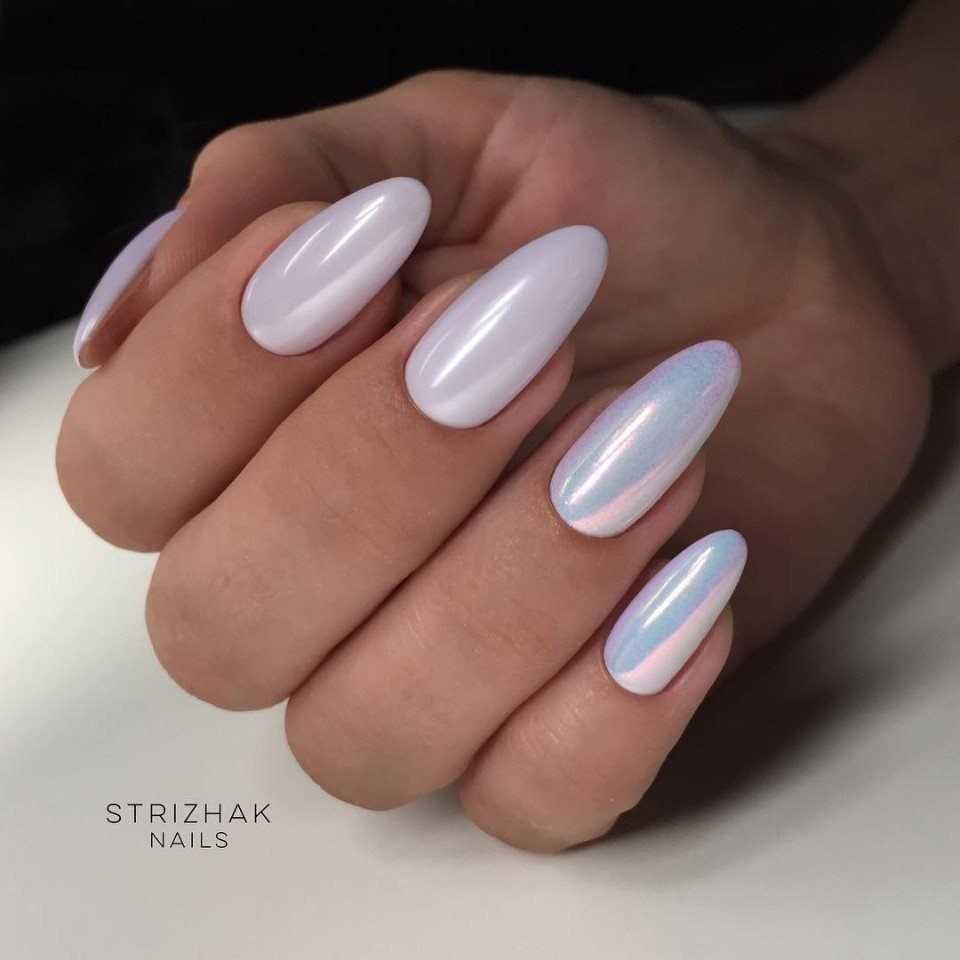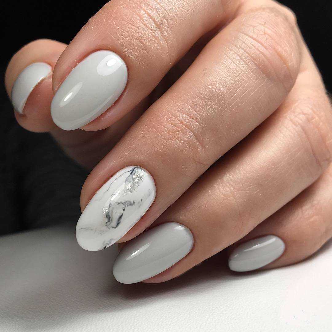 Белоснежный маникюр хорошо выглядит на любой длине, особенно на средней. Светлые ногти можно разбавить невесомым амбре с дымчатым или серым цветом. Белый цвет всегда входит в топы и никогда не выходит из моды.