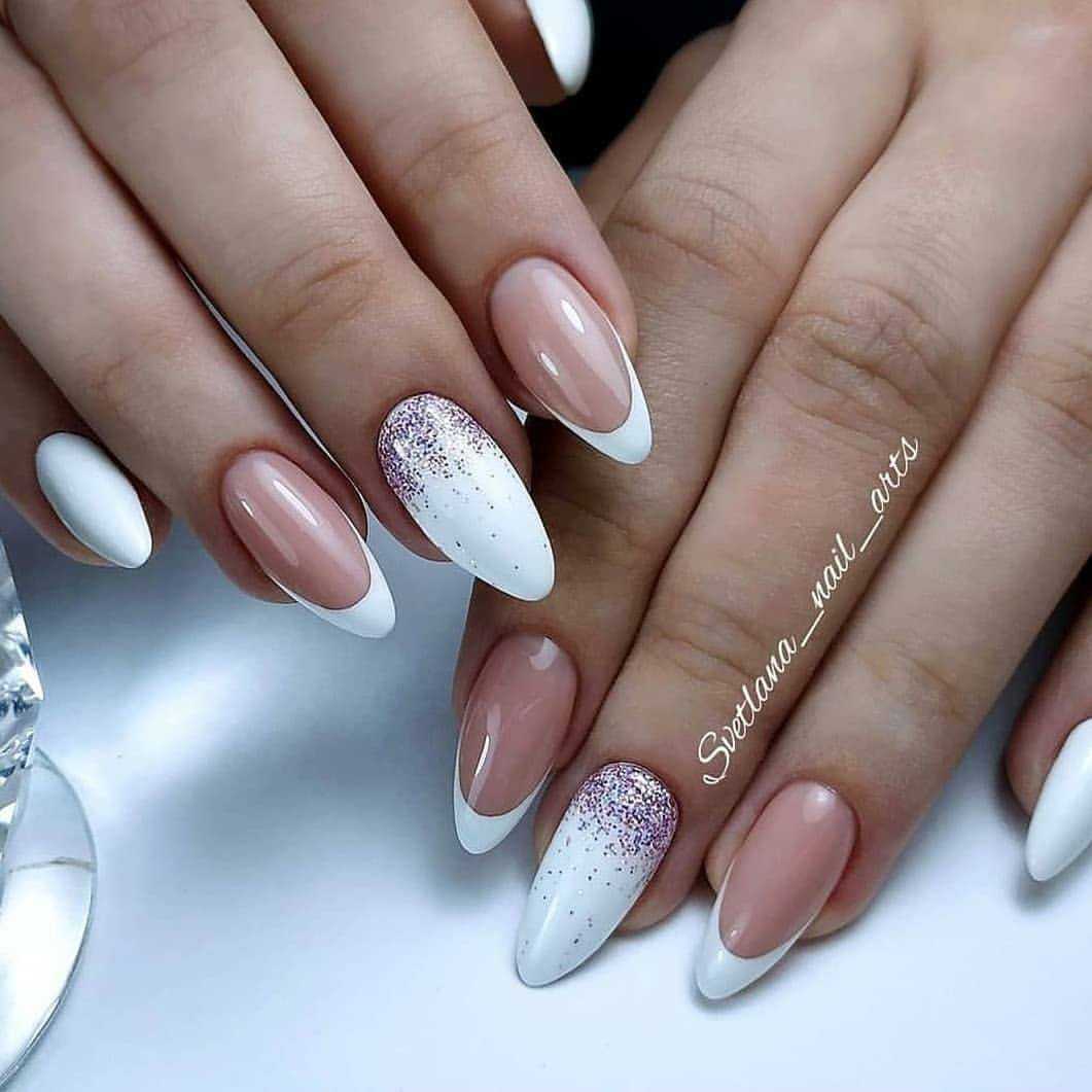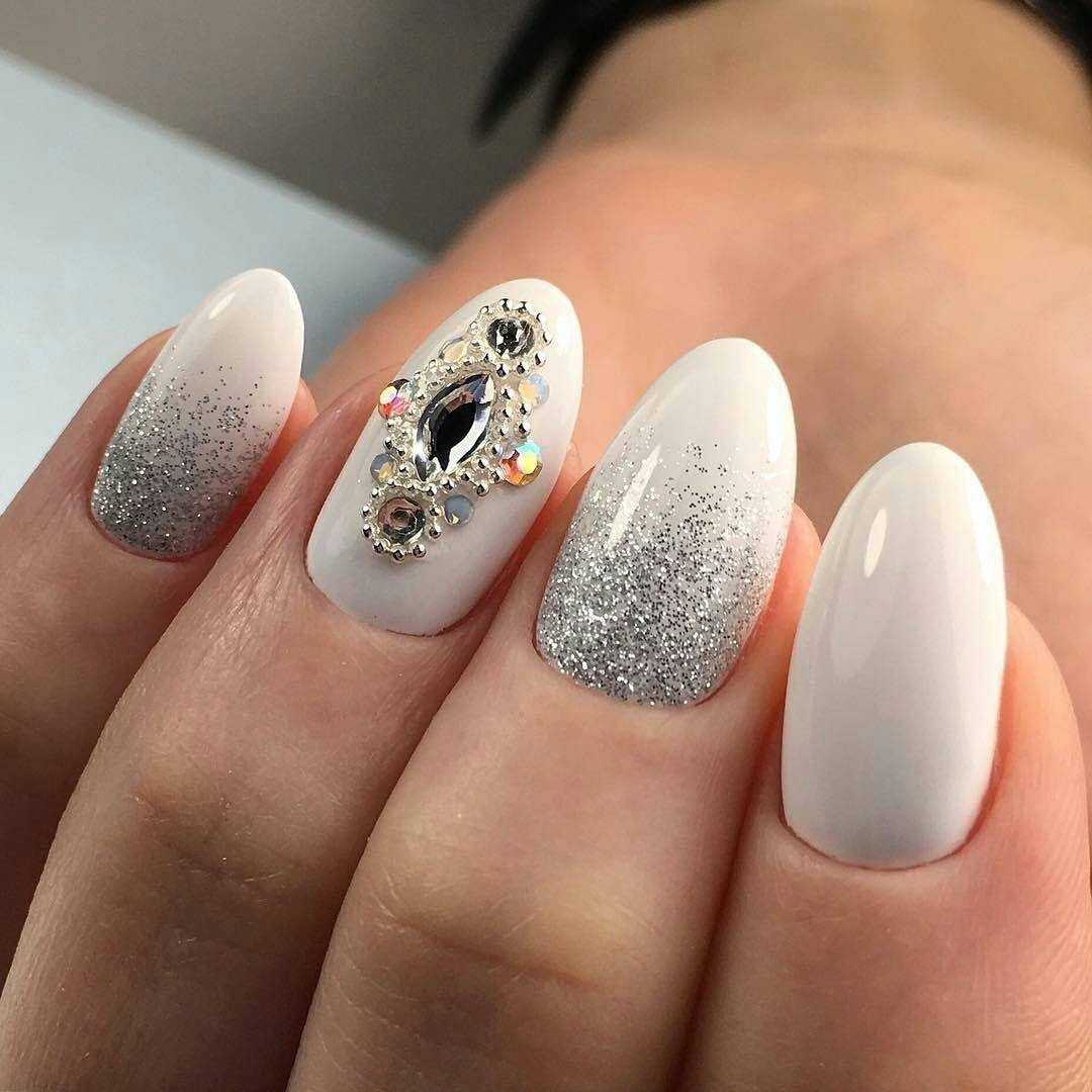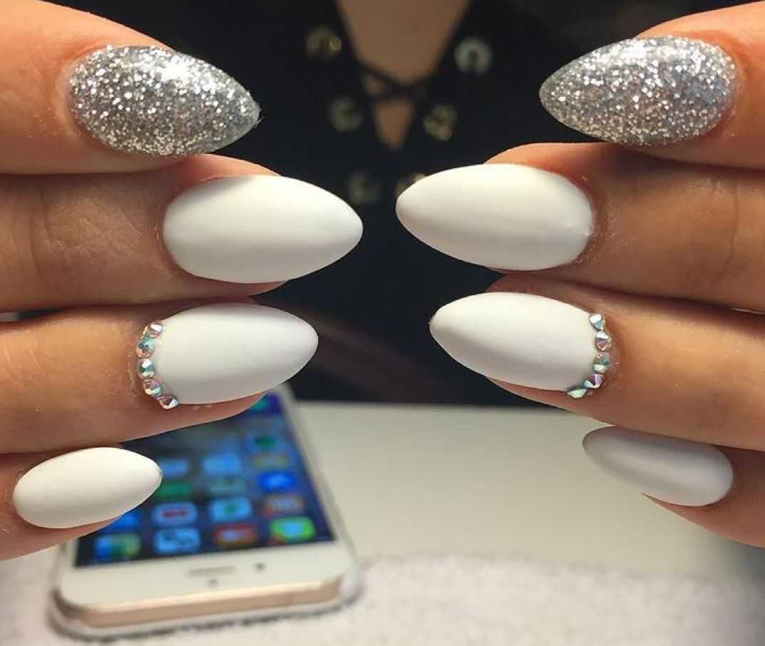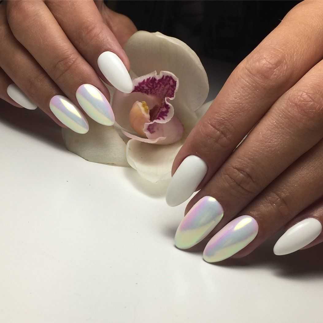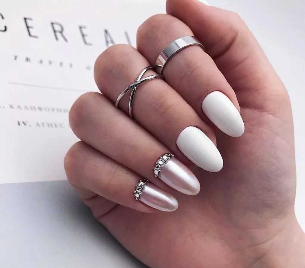 Белоснежный маникюр хорошо выглядит на любой длине, особенно на средней. Светлые ногти можно разбавить невесомым амбре с дымчатым или серым цветом. Белый цвет всегда входит в топы и никогда не выходит из моды.
