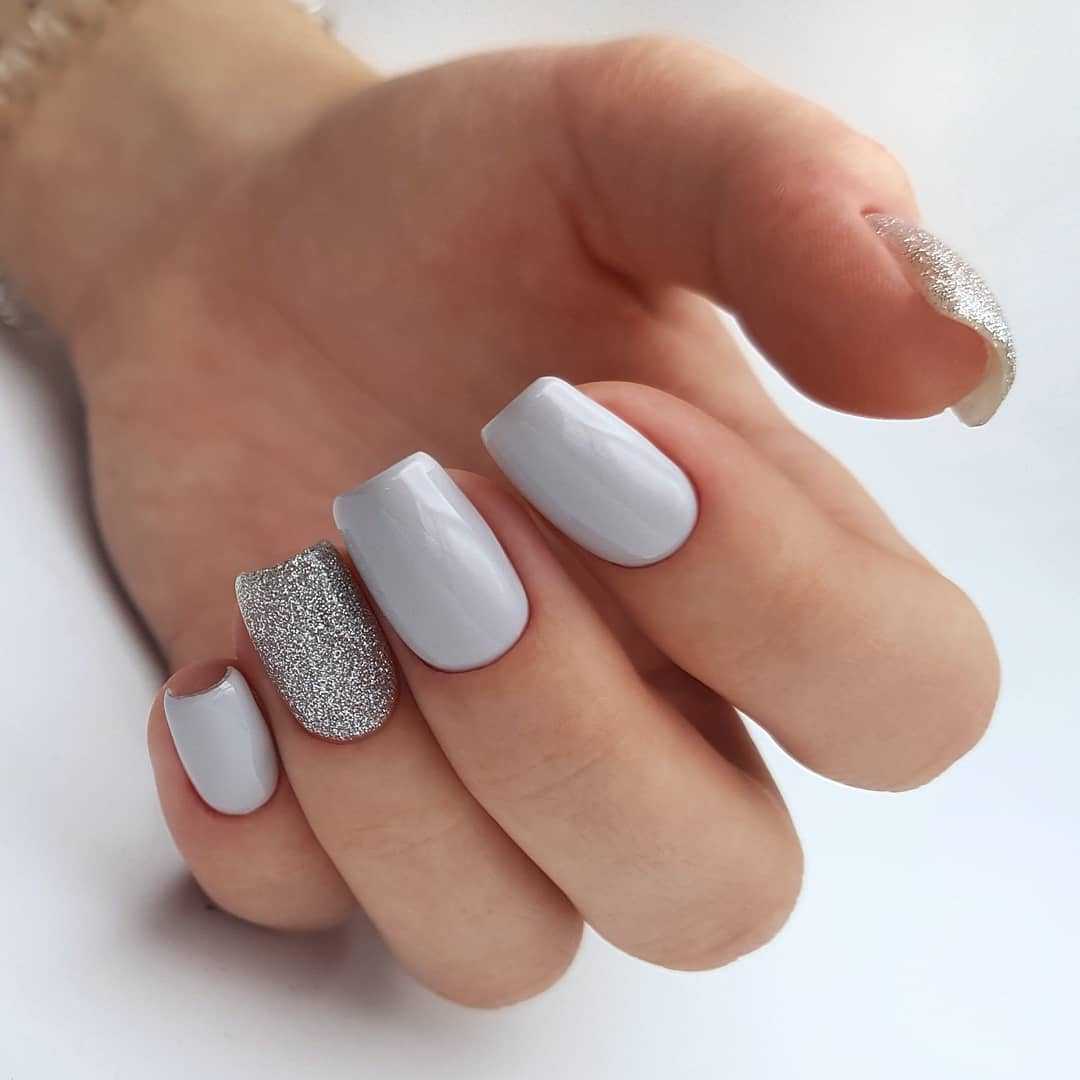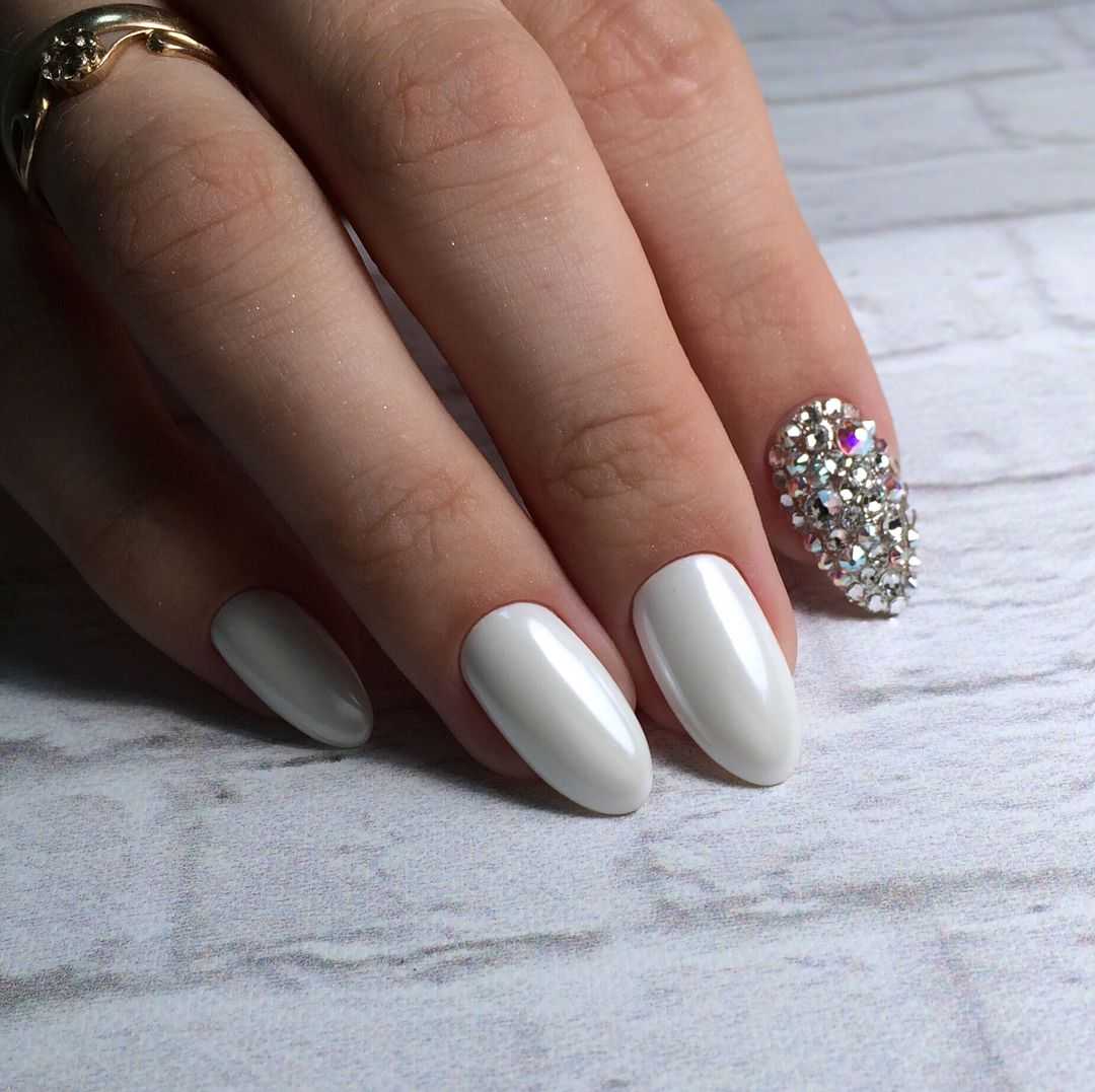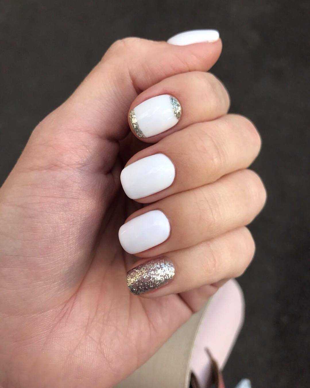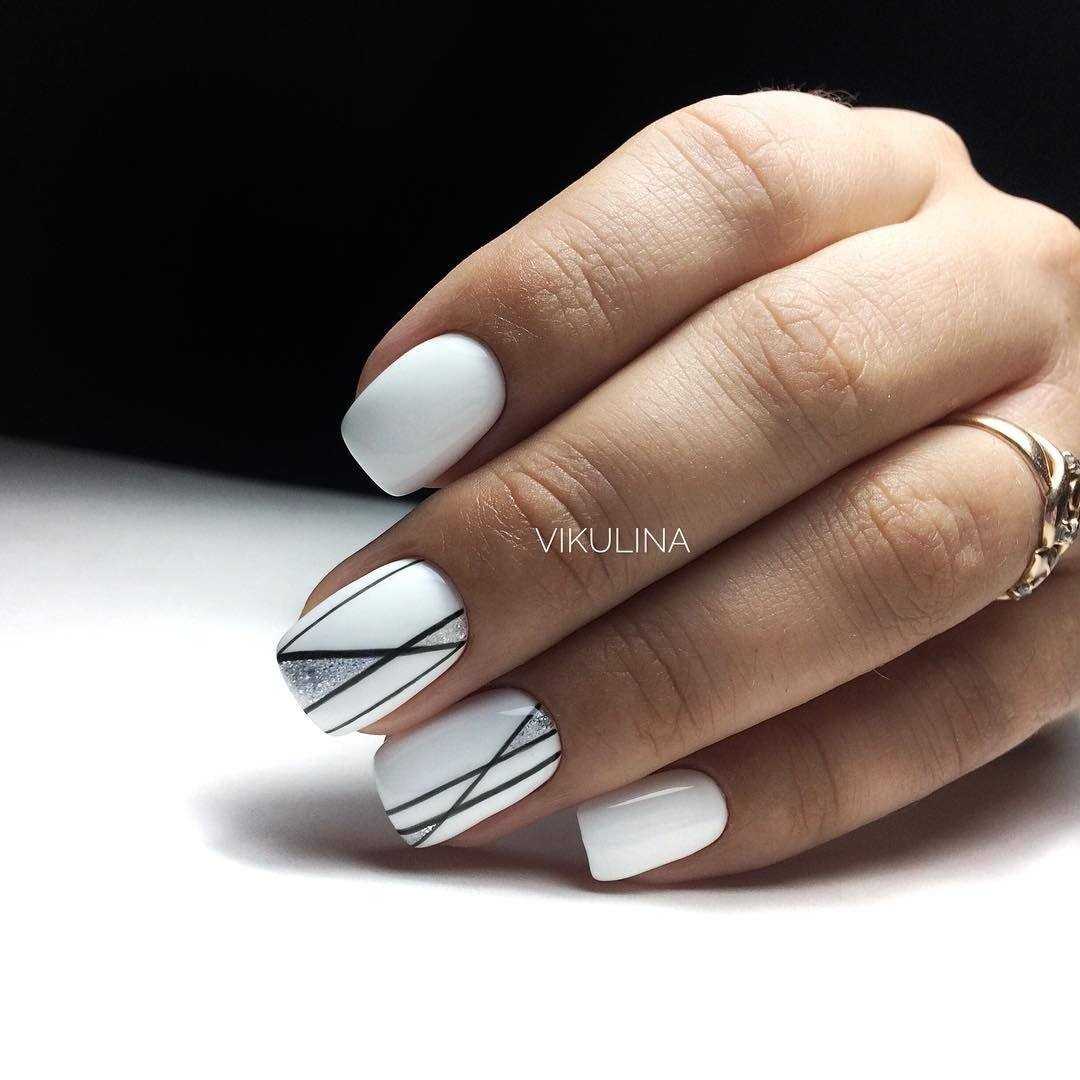 Белый цвет визуально увеличивает пространство ногтевой пластины, поэтому он отлично подойдет для декора коротких ноготков. В тренде однотонное покрытие белым цветом, дизайн с растяжкой блестками, использование гель-лаков, в состав которых входит шиммер или глиттер.