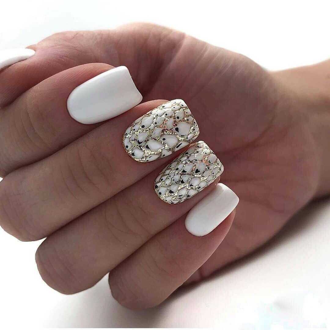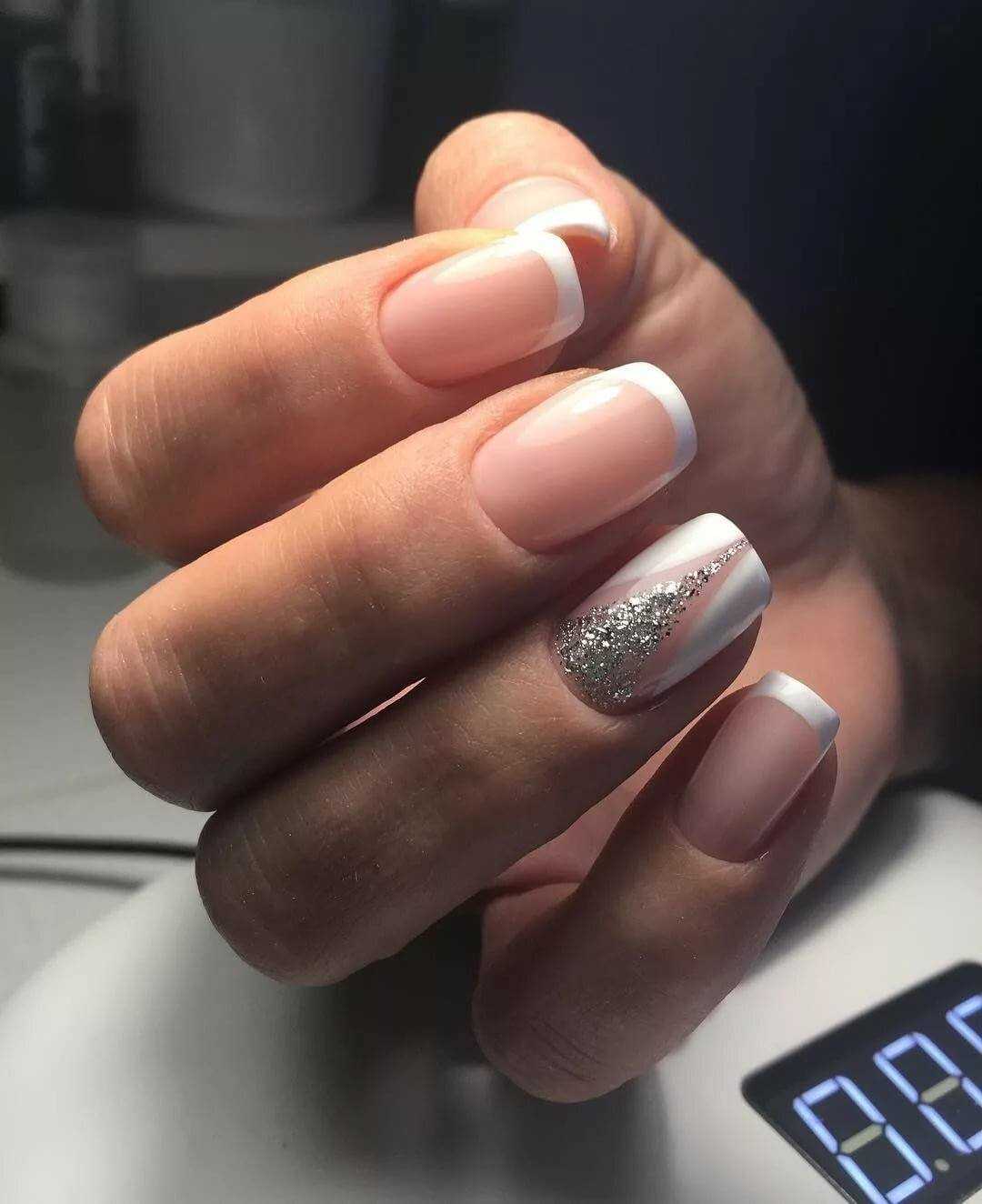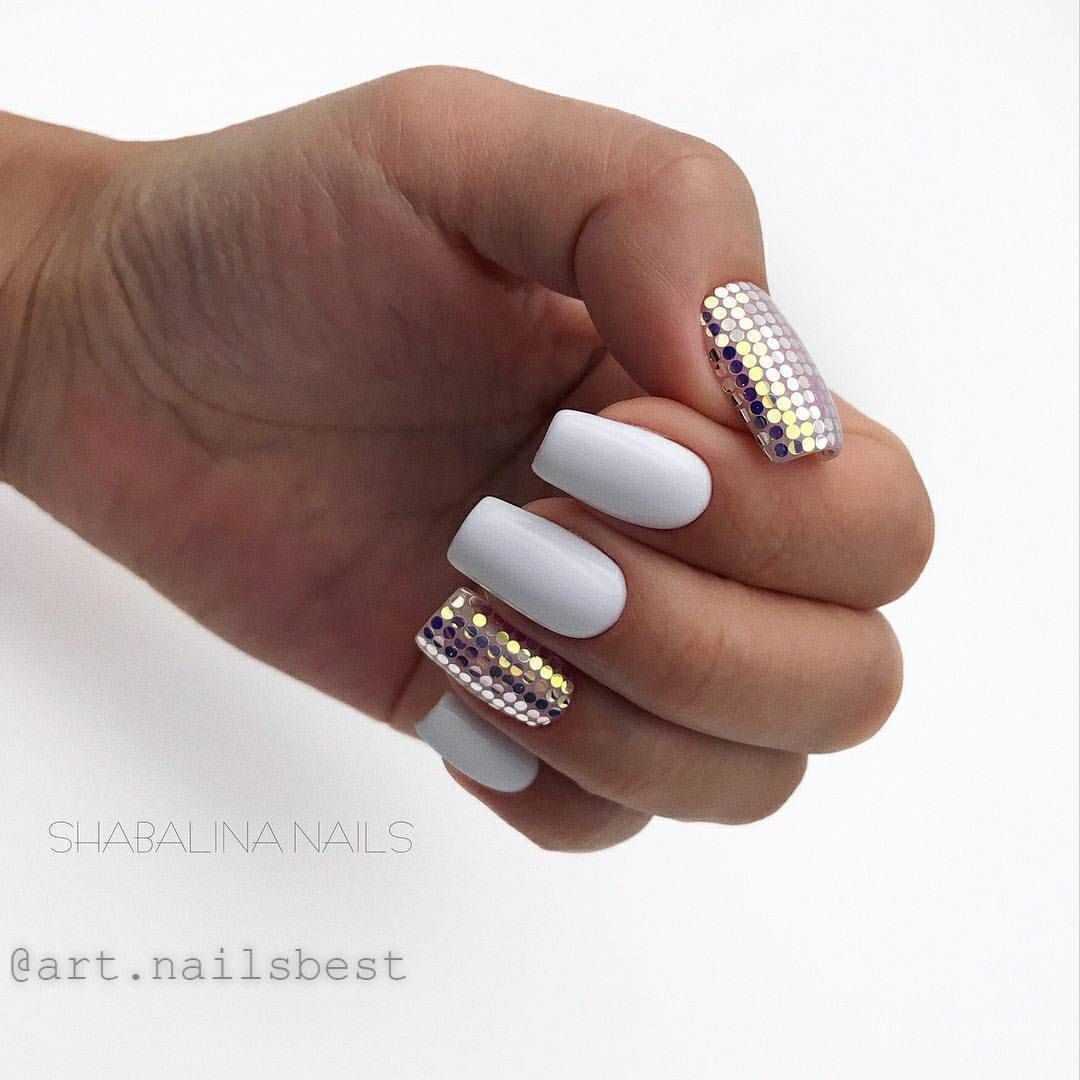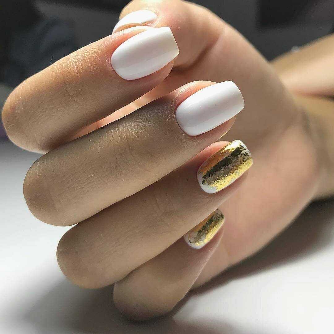 Белый цвет визуально увеличивает пространство ногтевой пластины, поэтому он отлично подойдет для декора коротких ноготков. В тренде однотонное покрытие белым цветом, дизайн с растяжкой блестками, использование гель-лаков, в состав которых входит шиммер или глиттер.