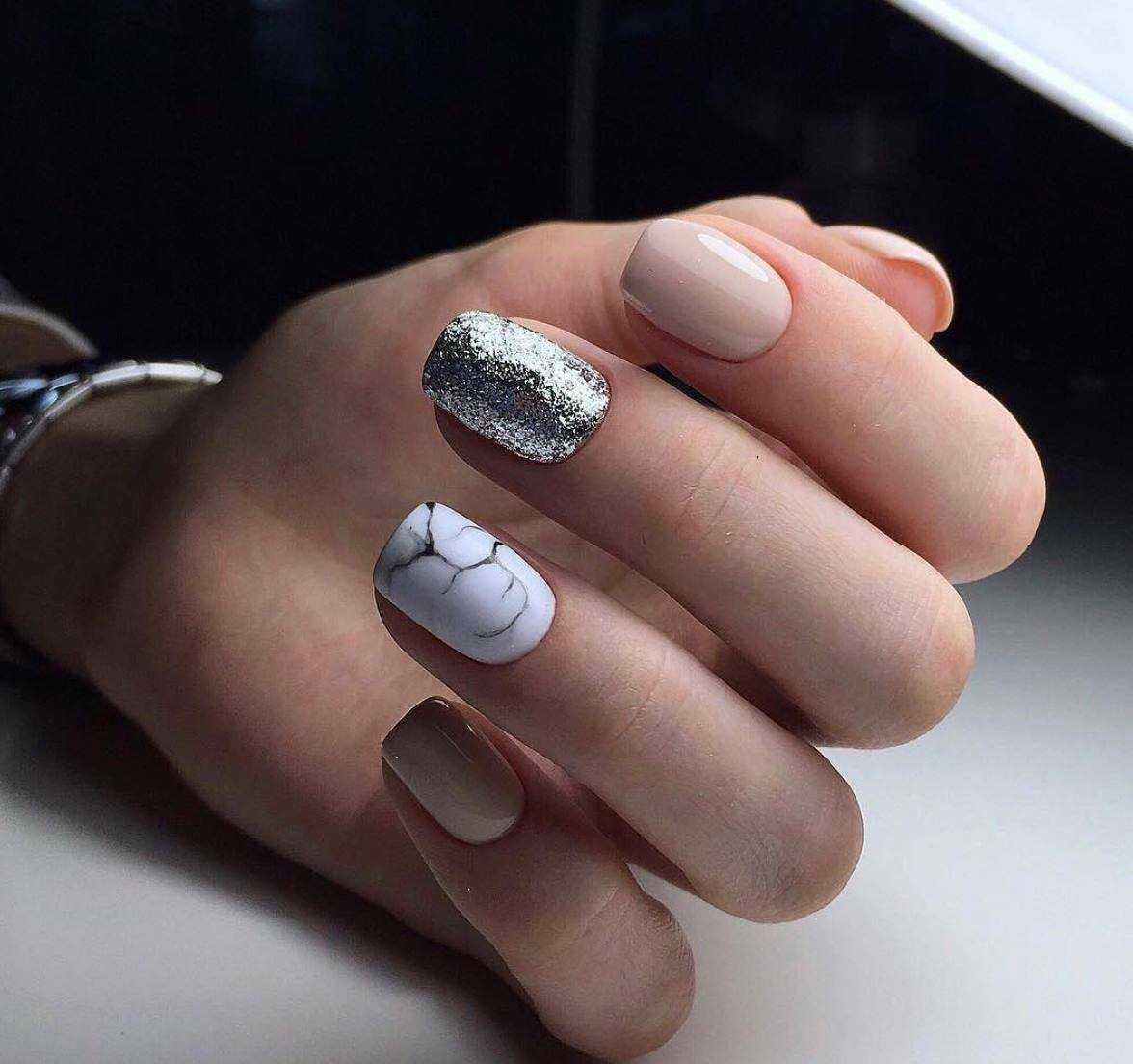 Нюд подойдет для маникюра на короткие и длинные ногти. На длинных ноготках можно создать много необычных дизайнов мрамора и цветочного нейл-арта. Также можно попробовать варианты росписи и декора, благодаря которым маникюр будет смотреться выразительно и заметно. На короткие ногти можно попробовать однотонные дизайны с геометрией.