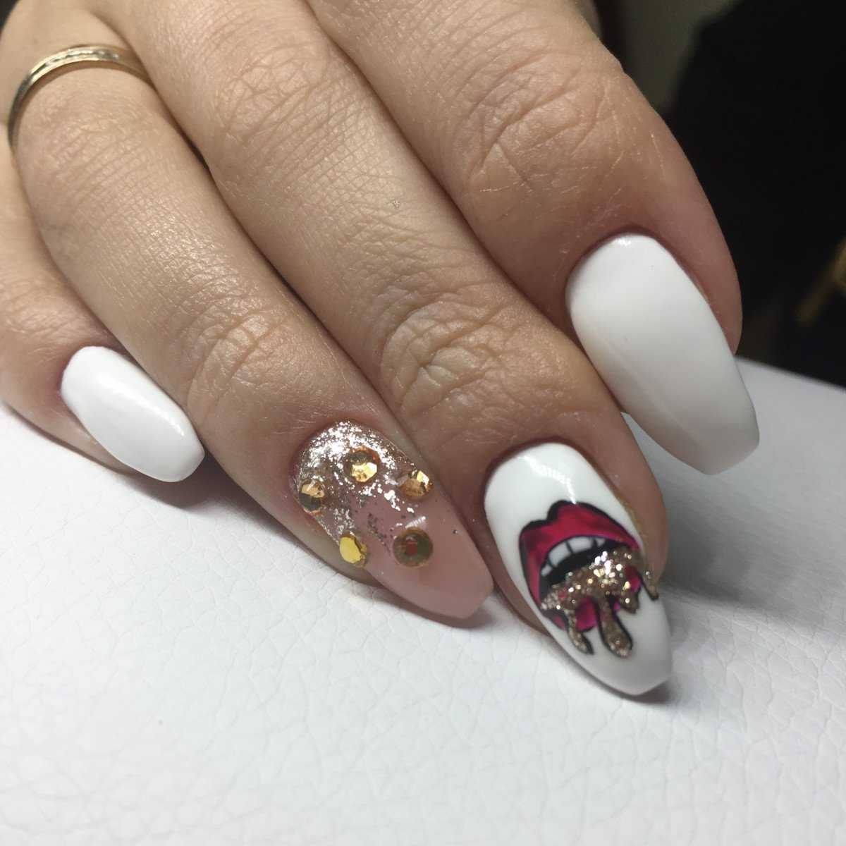 Его выбирают женщины каждый сезон, весна 2023 года не является исключением. Некоторые считают его скучным и слишком простым. Но если вы добавите золотые фрагменты, немного фольги, рисунки и прочие элементы декора, он заиграет совсем иначе. В этом сезоне нейл-мастера рекомендуют сделать белые матовые ногти с изображением лиц в черном цвете.