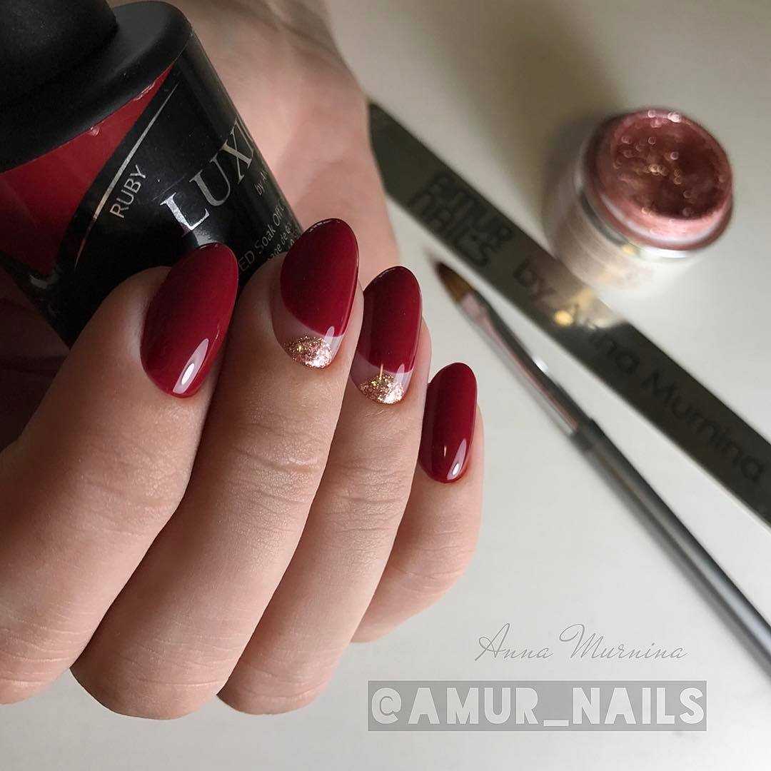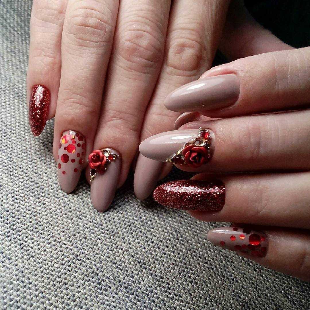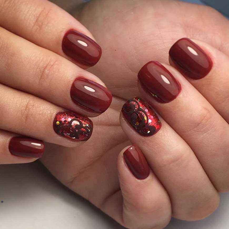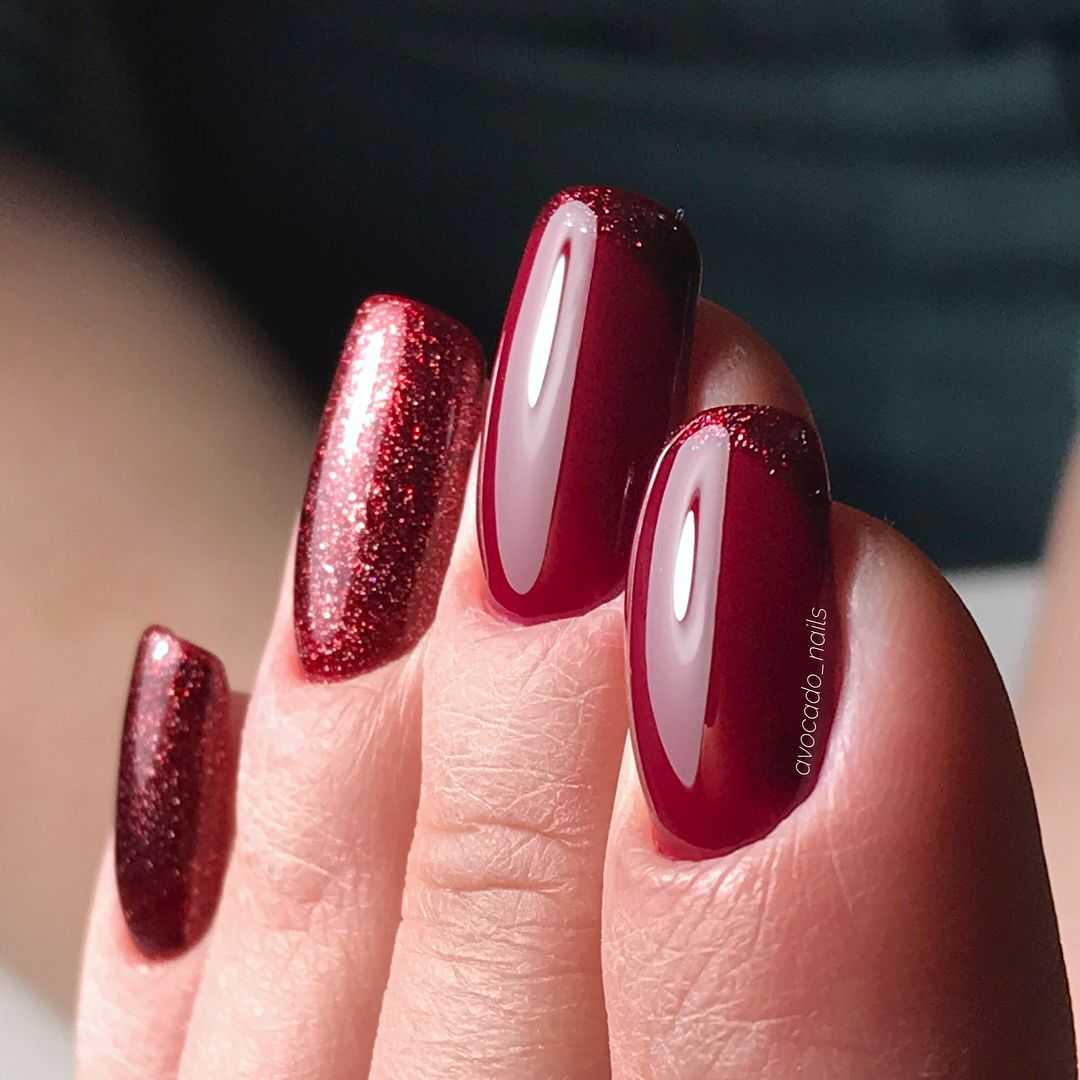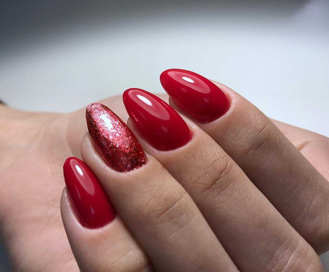 Красный маникюр с блестками 2020: идеи дизайна с блестящим декором