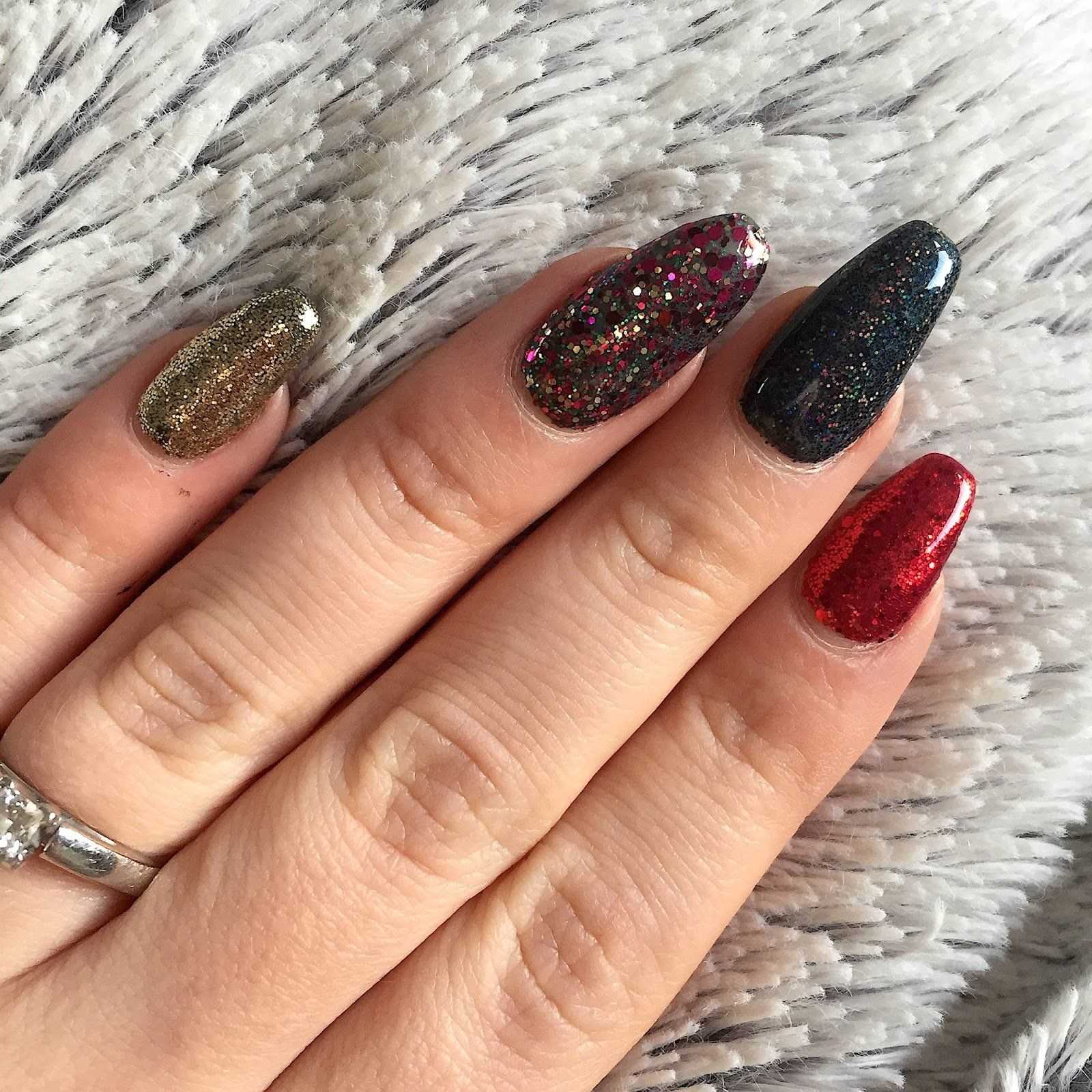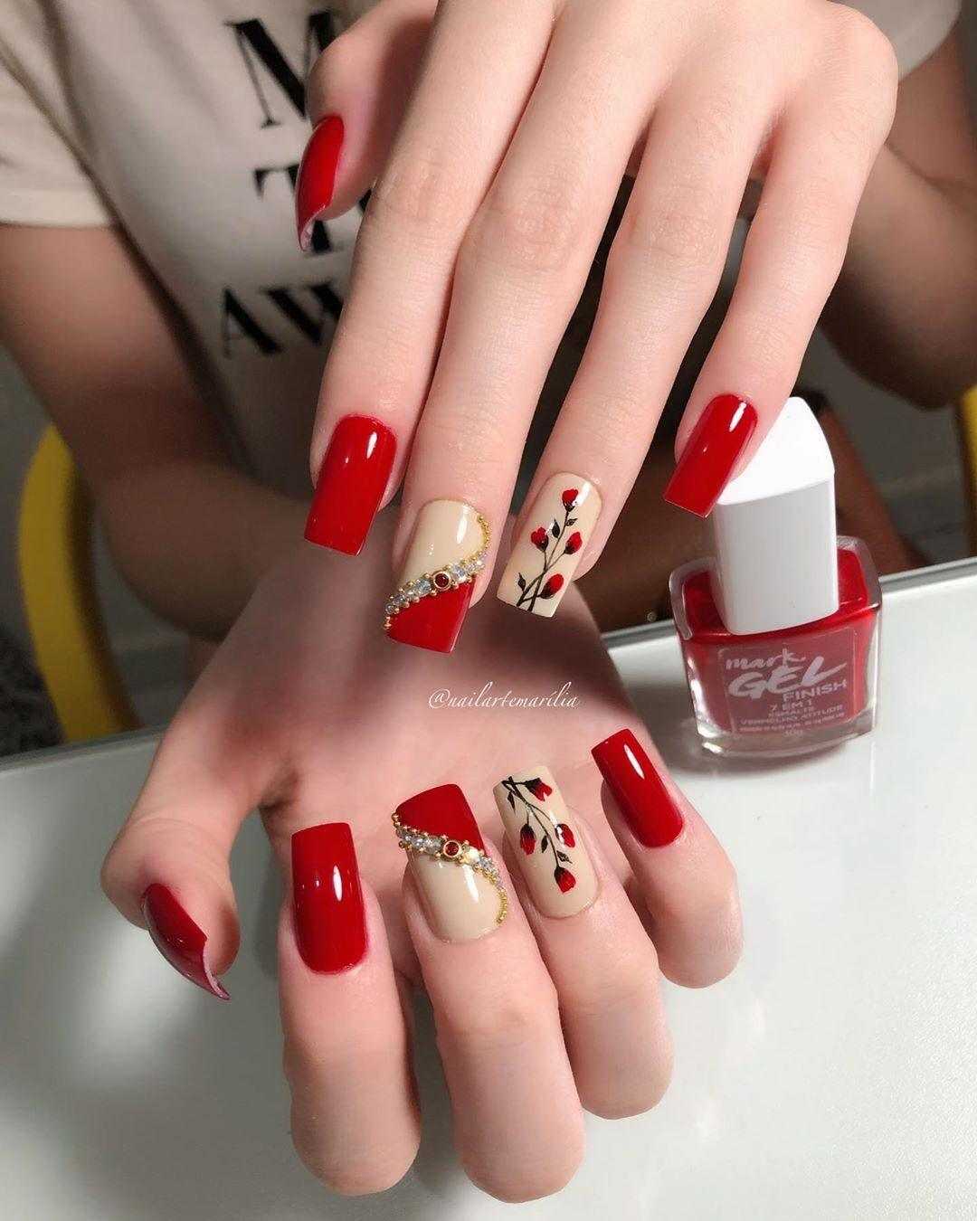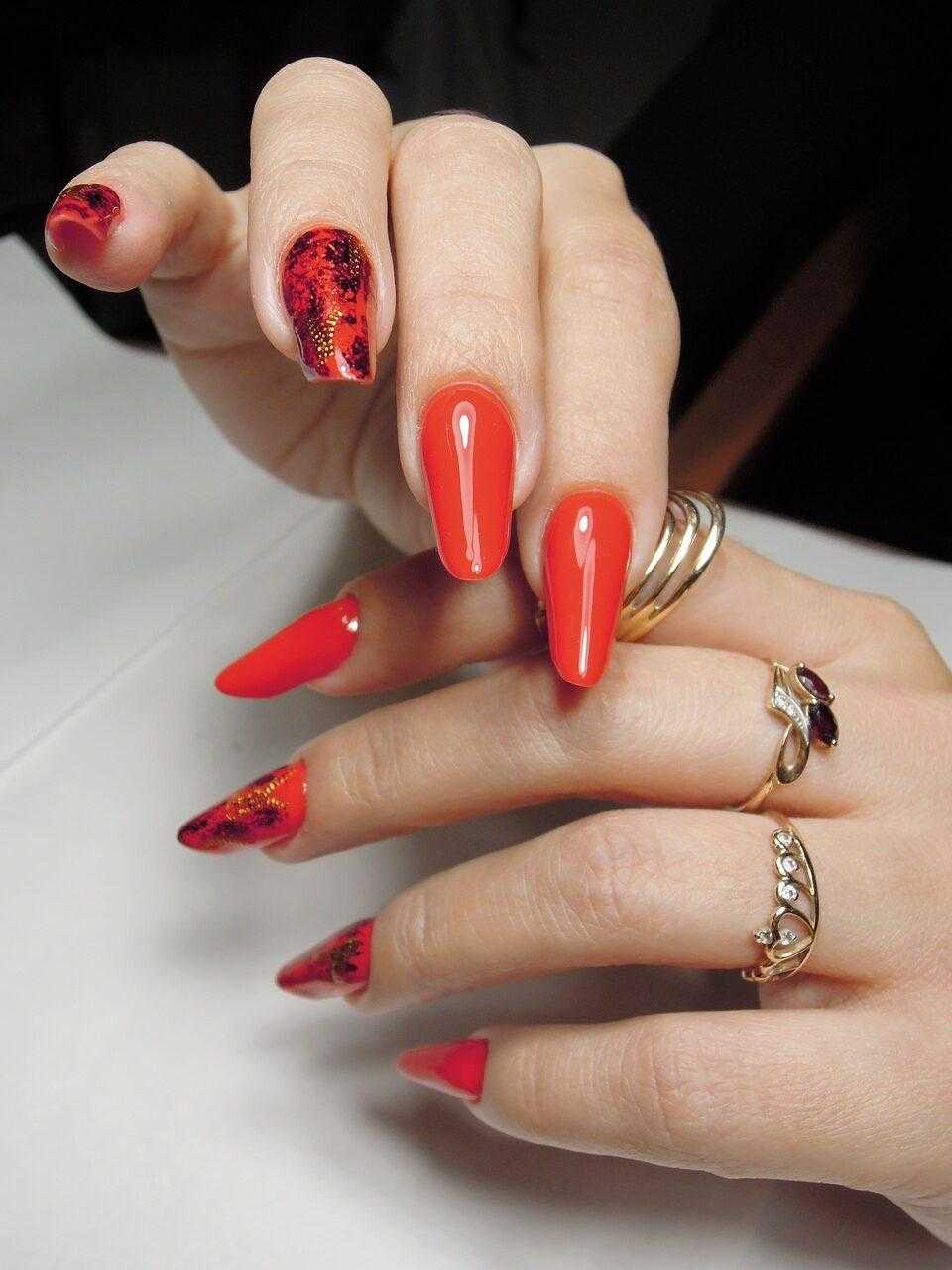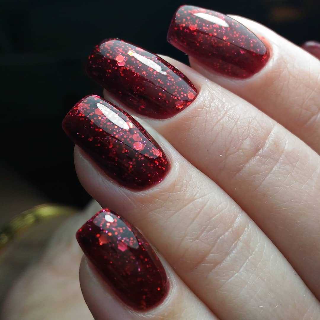 Красный маникюр с блестками 2020: идеи дизайна с блестящим декором