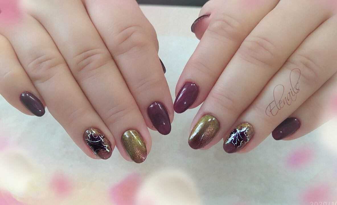 Многие несмотря на любовь к бордовому маникюру, многие девушки в теплое время года все-таки отдают предпочтение более ярким цветам, и интересным дизайнам. Но с первым дуновением холодного осеннего ветерка вспоминают о своем любимом извечном друге по имени Бордо. Не зря наш фаворит и цвета осени так удачно сочетаются. Золото, роспись кленовыми листьями и веточками рябины, медные стразы и винный цвет будто созданы друг для друга.