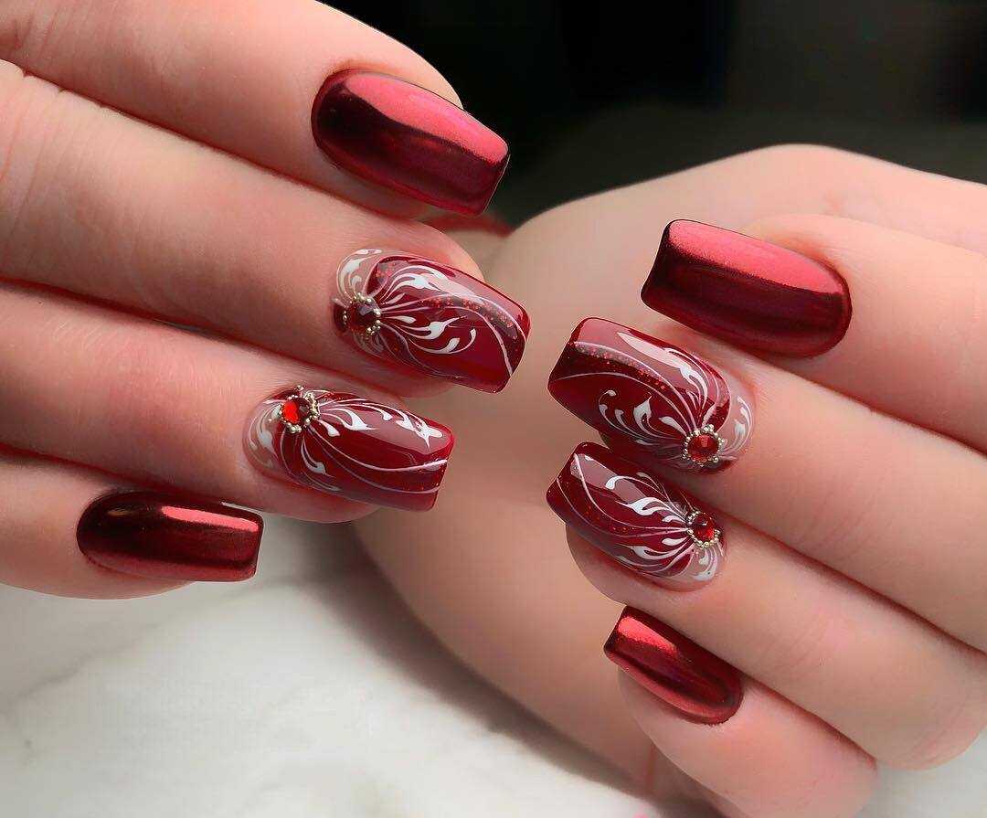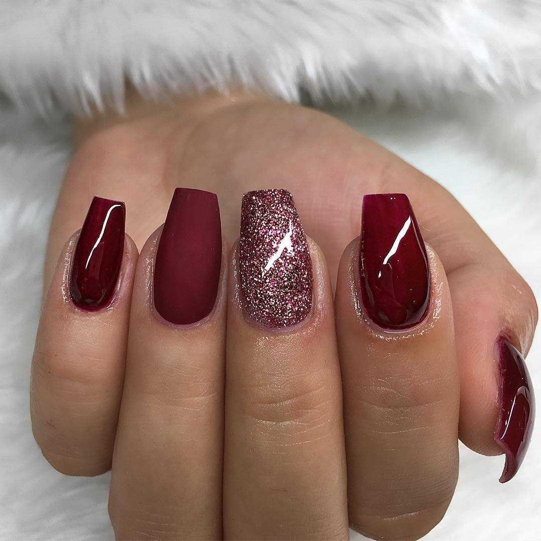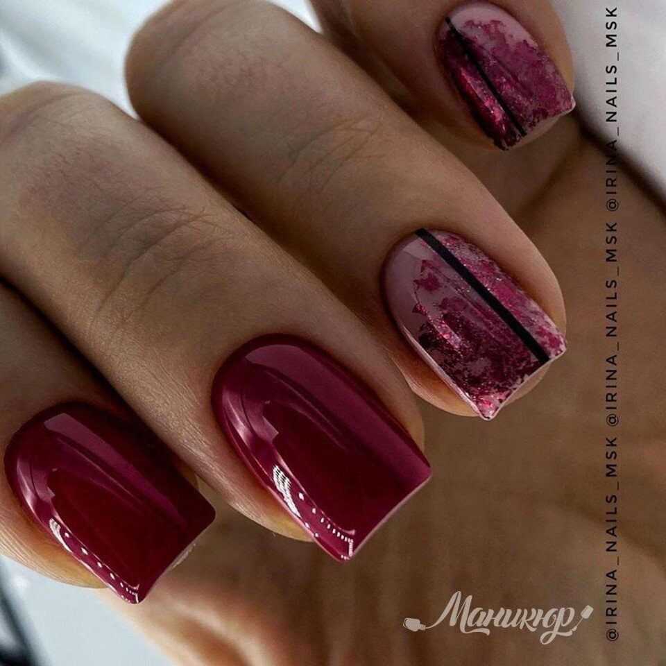 С таким великолепным цветом, как темно-красный, существует множество способов сделать дизайн уникальным и привлекающим внимание. Такой маникюр часто выбирают деловые женщины, потому что он гармонично смотрится с одеждой в офисном стиле