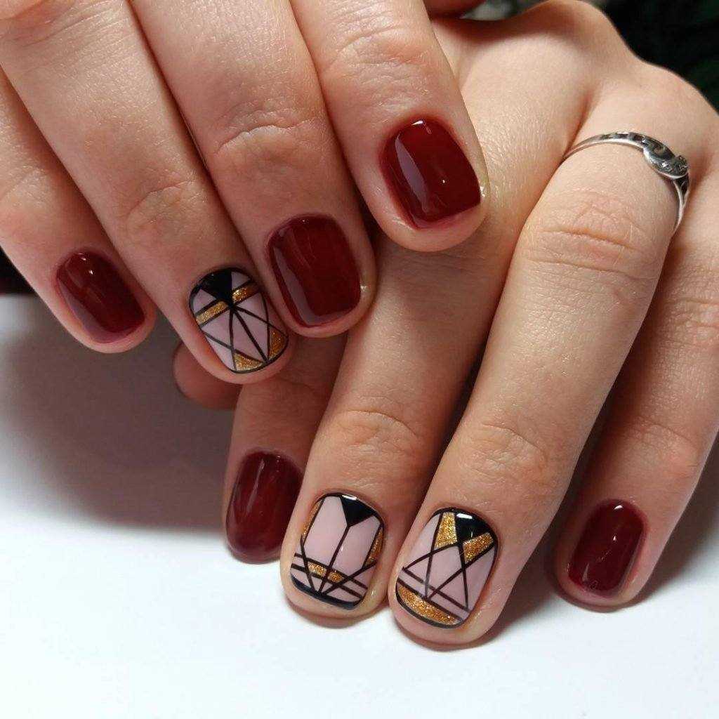 Фото дизайна бордовым гель-лаком на коротких ногтях