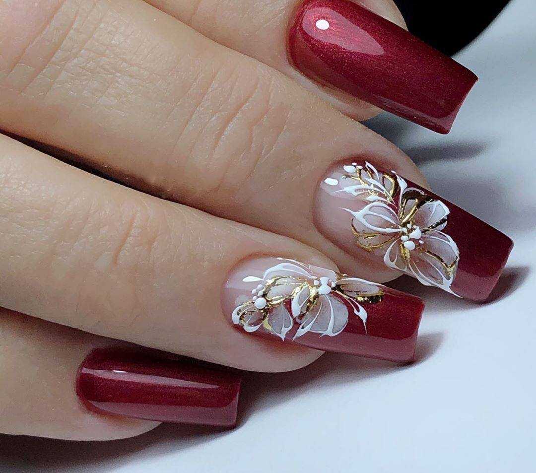 Вдохновляйтесь новыми идеями бордового маникюра с цветочными рисунками и создавайте на своих ноготках уникальные и неповторимые шедевры!