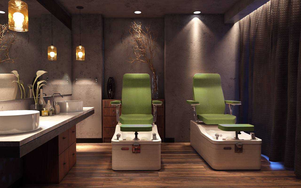 Кресло для педикюра. Должно быть удобно и для клиента, и для мастера. Возможно использование даже специального массажного кресла, которое параллельно с мастером, выполняет массаж спины