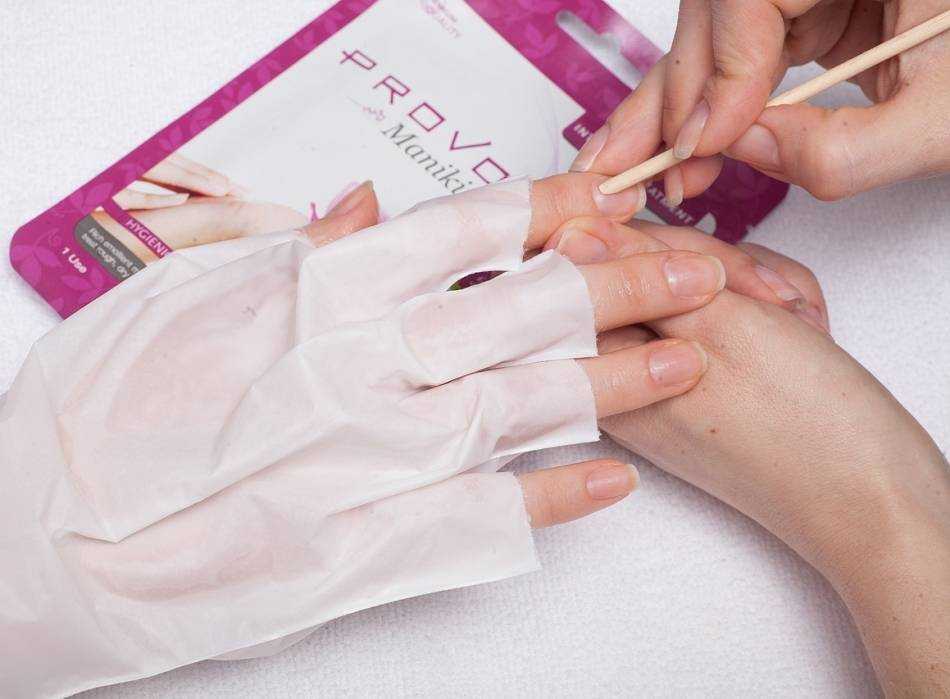 - Ещё несколько минут оставьте перчатки на руках. Эмульсия будет ухаживать за обработанной кутикулой