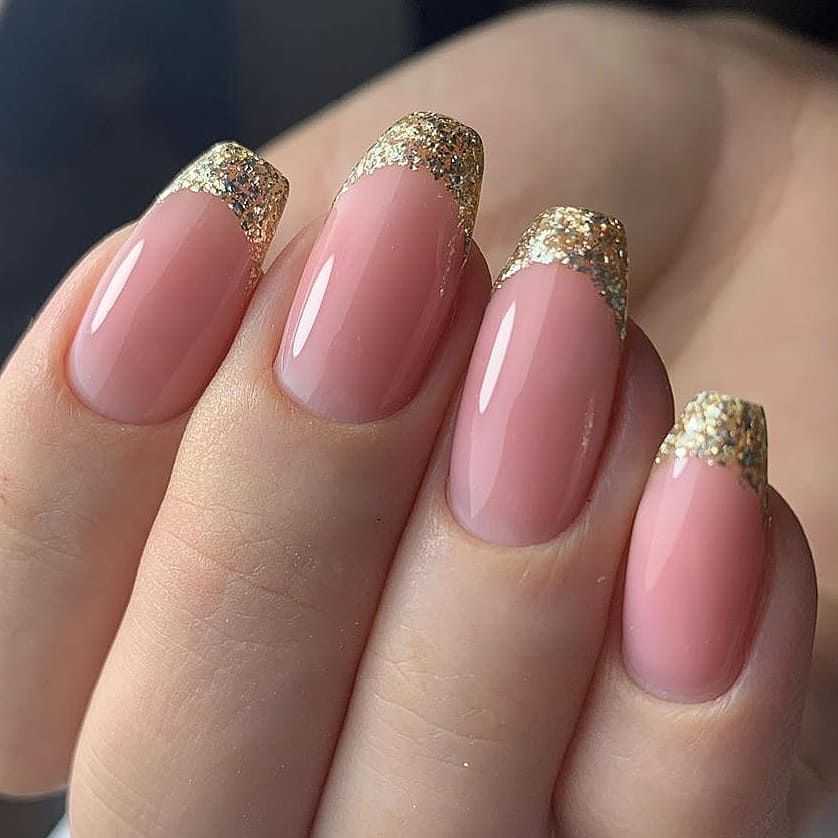 Любительницы лаконичного, нежного оформления чаще всего используют бежевый оттенок для основного покрытия. Кто-то считает такой маникюр слишком простым и скучным. В таком случае золотистые блестки будут идеальным украшением. Полоски, оттиски, геометрические детали или же полное покрытие – это лишь малая часть того, как именно можно оформить ноготки.