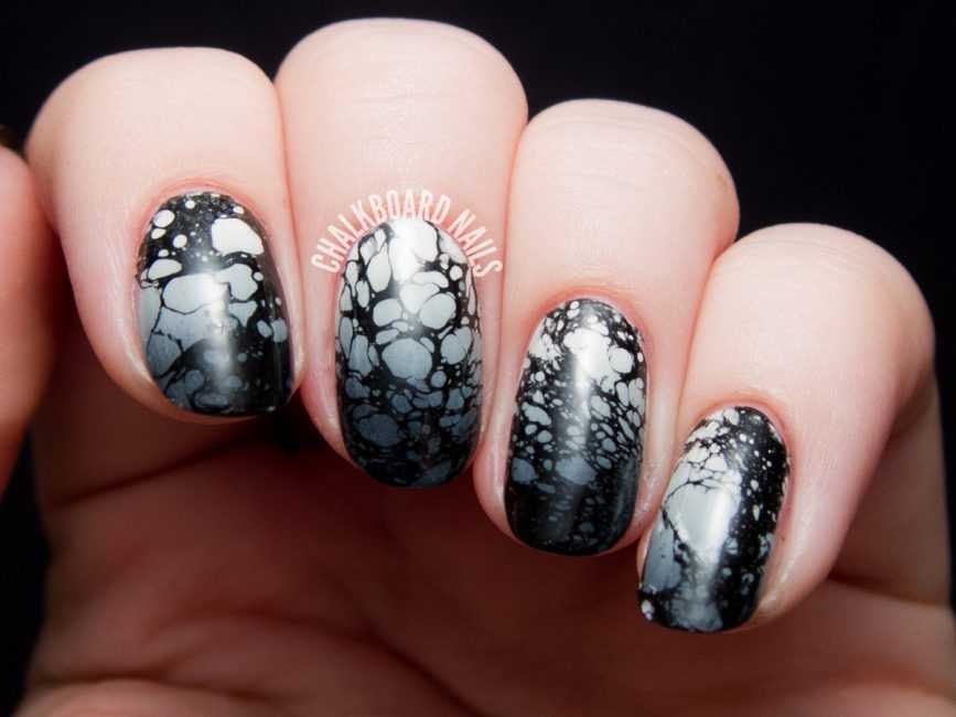 - Черный мраморный маникюр;
