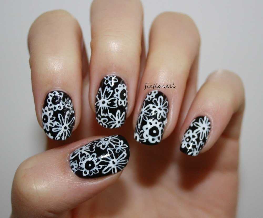 Вы также можете вырезать белые цветы на черной поверхности, чтобы создать оригинальный и красивый маникюр.