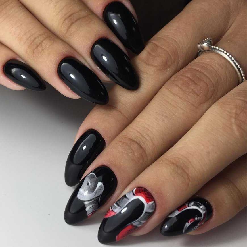 Новинки индустрии красоты позволяют создавать творческие шедевры на руках. При этом каждый ноготок заслуживает особого внимания и восхищения. Черный цвет может заиграть новыми оттенками и рисунками, ведь на смену скучным сочетаниям приходят новые техники и украшения.