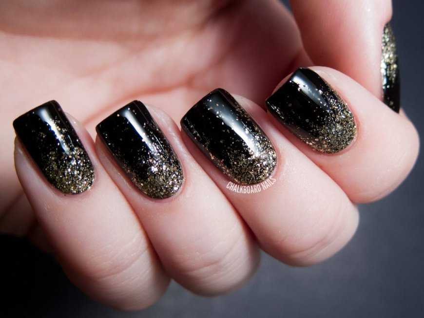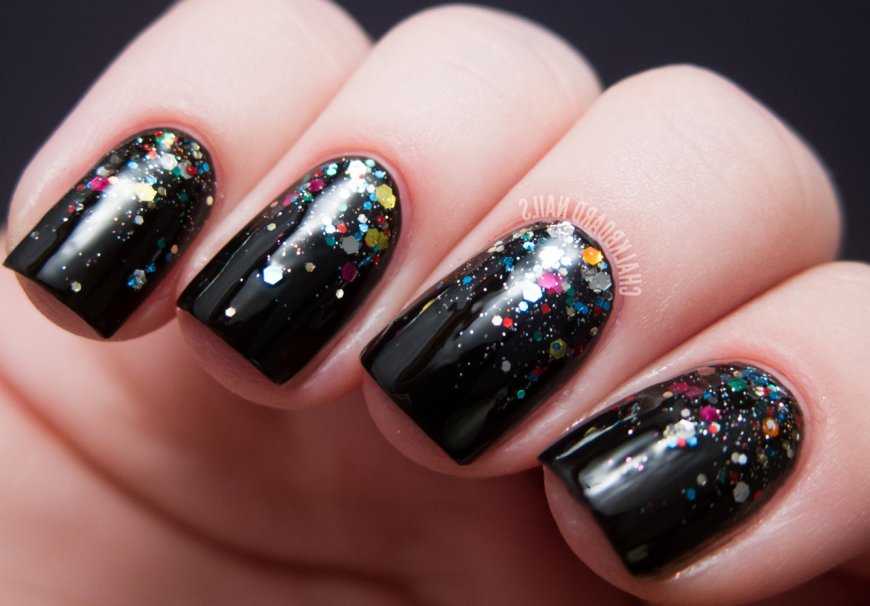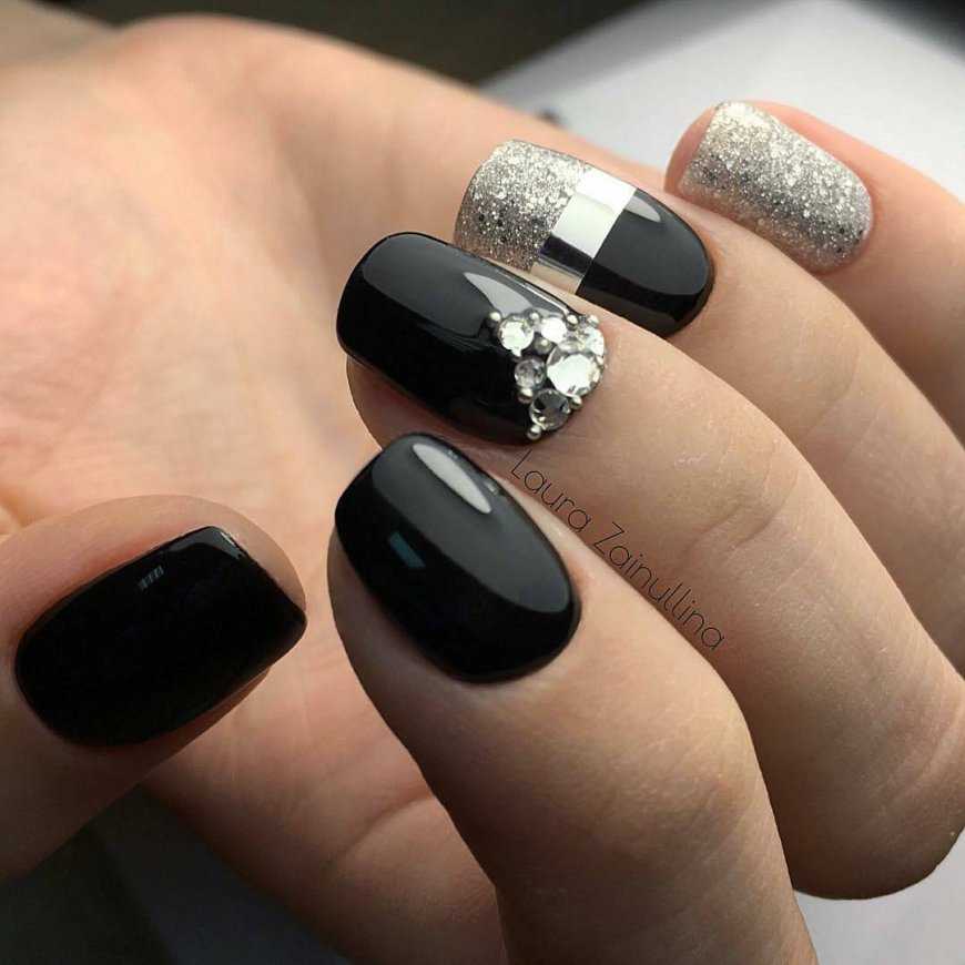 Чёрный маникюр со стразами и блёстками
