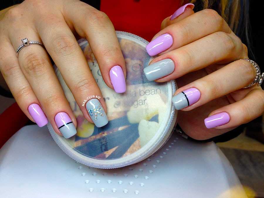 Рисунком с полосками лучше украсить не все ногти, а всего несколько, остальные можно оставить однотонными.. Выбор редакции: Фиолетовый маникюр: варианты модного дизайна