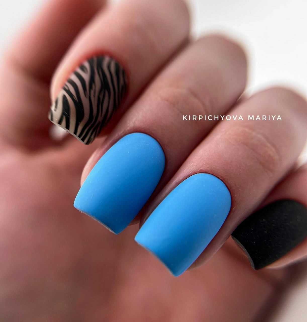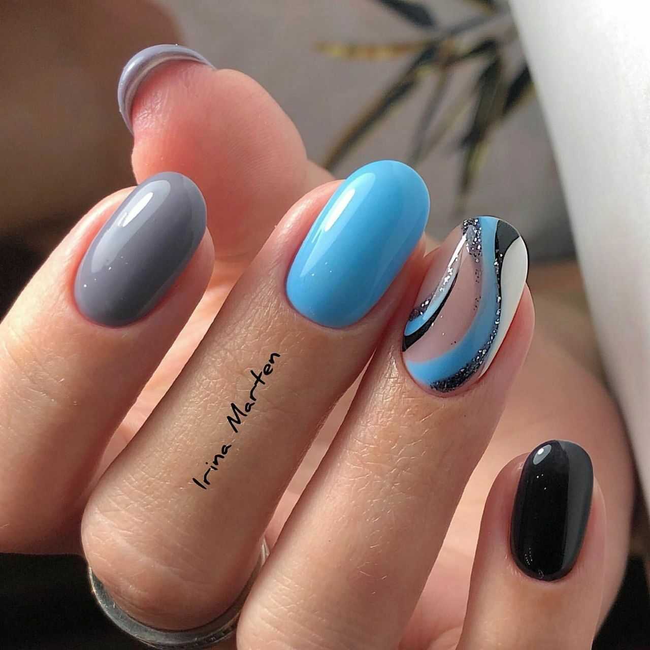 Пастельный голубой подойдет для разной формы и длины. Он гармонично сочетается с любыми оттенками кожи. В сочетании с серым цвет может создать элегантный и женственный образ. Его стоит использовать в качестве основы для рисунка или для однотонного покрытия.