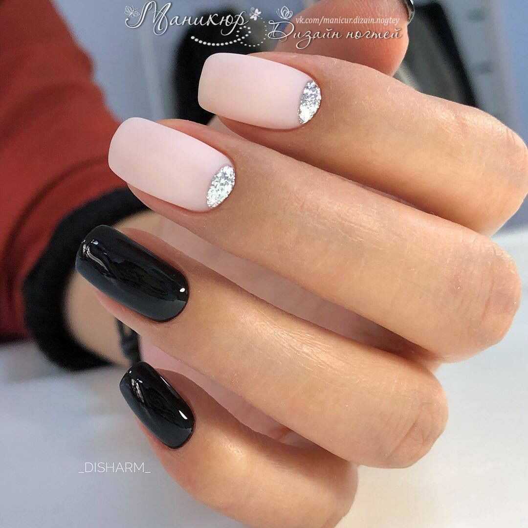 Примечательно, что используя темные тона, лучше всего добавить несколько разнообразных фактур в маникюр, например сочетание матового топа и втирки с эффектом металлик, либо использовать мерцающие лаки для хитового дизайна «кошачий глаз».