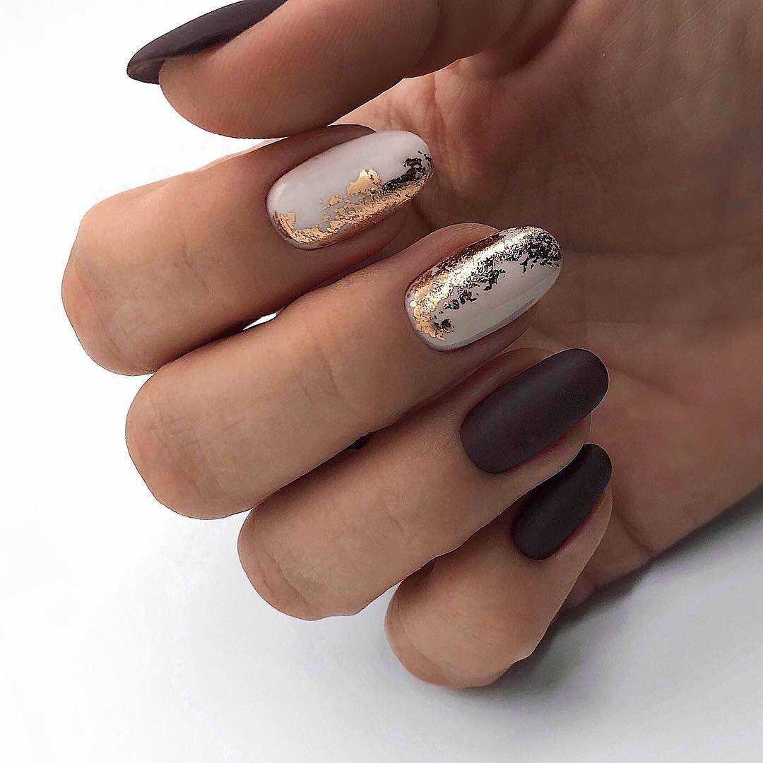 Для более раскрепощенного и рокового образа можно использовать сочетание золота с темно-бордовой или сливовой основой. А вот что касается хитового в этом сезоне мраморного маникюра, явным фаворитом станет имитация натурального камня, которая будет выглядеть максимально реалистично.